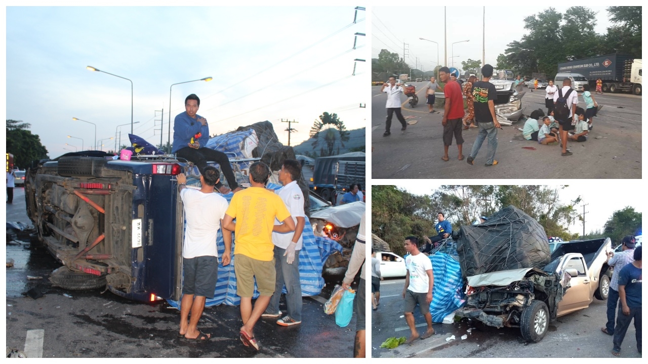 กระบะขนผักชนเก๋งและกระบะบรรทุกนักเรียน รวม 3 คันตรงยูเทิร์นบ้านกรูด ทำให้มีผู้บาดเจ็บนอนเกลื่อนถนนนับ 10 ราย ส่วนมากเป็นนักเรียนที่นั่งรถกลับบ้าน โชคดีไม่มีผู้เสียชีวิต ตร.ธงชัย เร่งสอบ...
