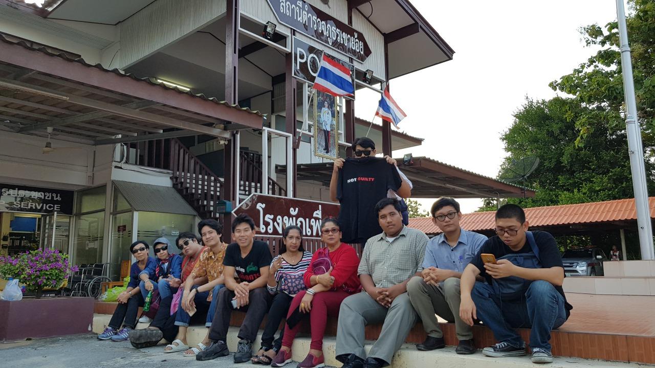 แกนนำกลุ่มนักศึกษาประชาธิปไตยศึกษา กล่าวต่อว่า อย่างไรก็ตามตลอดเส้นทางตนและคณะถูกเจ้าหน้าที่ตำรวจ ทหารตั้งด่านสกัด ตรวจค้น มาตลอดเส้นทางโดยจุดแรกถูกตรวจค้นที่ อำเภอปากท่อจังหวัดราชบุรี แต่เจ้าหน้าที่ตำรวจไม่พบสิ่งผิดกฎหมายและได้ปล่อยตัวให้เดินทางต่อ กระทั่งเมื่อเข้าเขตอำเภอเขาย้อยจังหวัดเพชรบุรี ถูกตั้งด่านสกัดอีกครั้งถูกตรวจปัสสาวะ และเจ้าหน้าที่แจ้งฐานความผิดว่า ผู้ขับรถและรถโดยสารใบอนุญาตขนส่งหมดอายุ จึงทำให้ตนและผู้ร่วมอุดมการณ์ทั้งหมด ต้องเดินทางมาที่ สภ.เขาย้อย