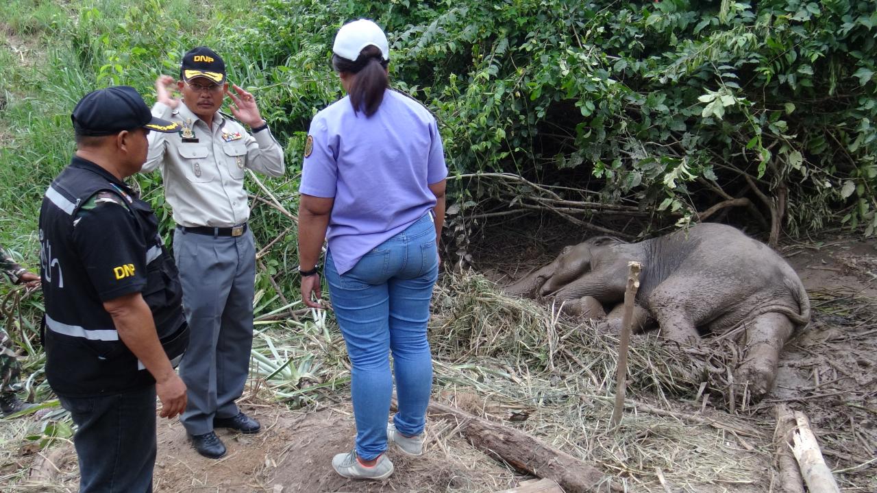 ต่อมาเวลา 17.30 น. นายสวัสดิ์ ทวีรัตน์ ผู้อำนวยการสำนักบริหารพื้นที่อนุรักษ์ที่ 3 สาขาเพชรบุรี พร้อมด้วย สัตวแพทย์หญิงสุนิตา วิงวอน นายสัตวแพทย์ประจำกลุ่มงานเพาะเลี้ยงสัตว์ป่า สำนักอนุรักษ์สัตว์ป่า กรมอุทยานแห่งชาติสัตว์ป่าและพันธุ์พืช ลงพื้นที่ประเมินอาการบาดเจ็บล่าสุด เพื่อวางแนวทางในการรักษาที่เหมาะสมและปลอดภัยกับลูกช้างป่ามากที่สุด โดยสัตวแพทย์ได้ตรวจอาการบาดเจ็บของลูกช้างป่า อายุ 5-6 ปี สามารถระบุเพศได้เป็นเพศผู้