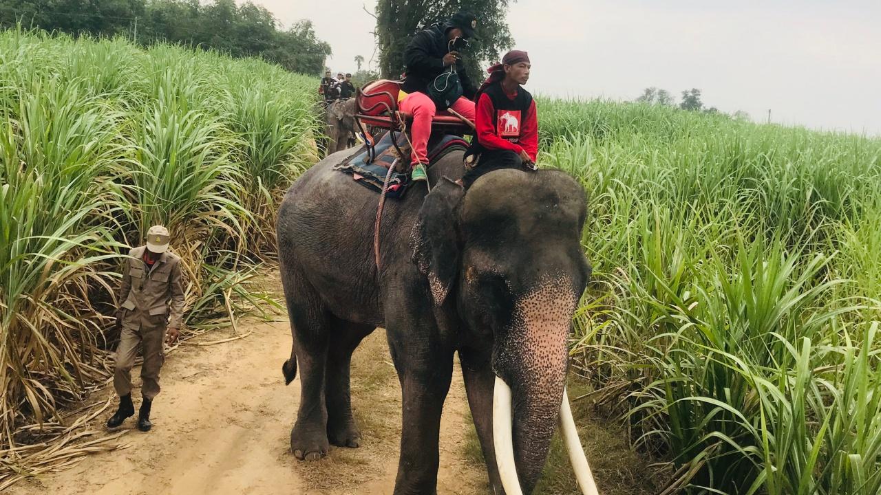 นอกจากนี้ นายลายทองเหรียญ มีพัน หัวหน้าวังช้างอยุธยาแลเพนียด ได้นำช้าง 4 เชือกประกอบด้วย พรายสยาม - พรายมรกต - พังพุดตาล และพังบุหงา เดินทางมายังบริเวณไร่อ้อย เพื่อช่วยเหลือเจ้าหน้าที่ในการค้นหาด้วย โดยทันทีที่มาถึงควานช้างได้นำช้างทั้ง 4 เชือกออกลุยไร่อ้อยทำการค้นหาทันที.