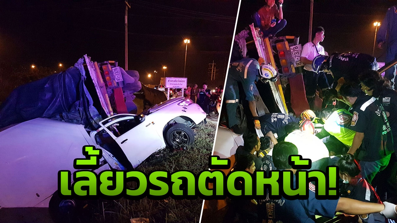 ยังไม่รู้ใครผิด อ้างกระบะเลี้ยวตัดหน้ากะทันหัน โชเฟอร์สิบล้อบรรทุกแป้งมันบอกเบรกไม่ทัน พุ่งชนอย่างจัง อัดก๊อปปี้หนุ่มคนขับสาหัสคาซากจนท.เร่งใช้อุปกรณ์ตัดถ่างช่วยเหลือ ก่อนไปเสียชีวิตที่รพ.