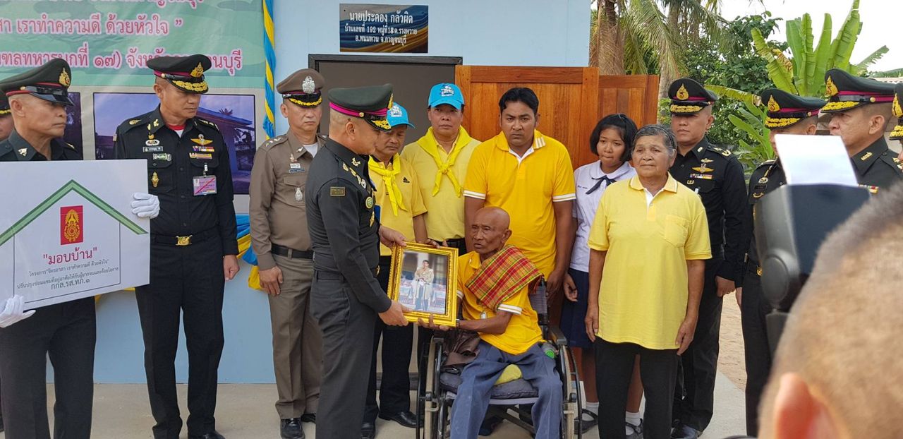 มทภ.1 เป็นประธานมอบบ้านและเตียงผู้ป่วย โครงการปรับปรุงซ่อมแซมที่อยู่อาศัย ให้กับผู้ยากไร้และด้อยโอกาส ใน 26 จังหวัดภาคกลาง ภายใต้โครงการจิตอาสา "เราทำความดี ด้วยหัวใจ" ตามพระราโชบาย ของสมเด็จพระเจ้าอยู่หัว ทำเอาชาวกาญจนบุรีสุดตื้นตัน...