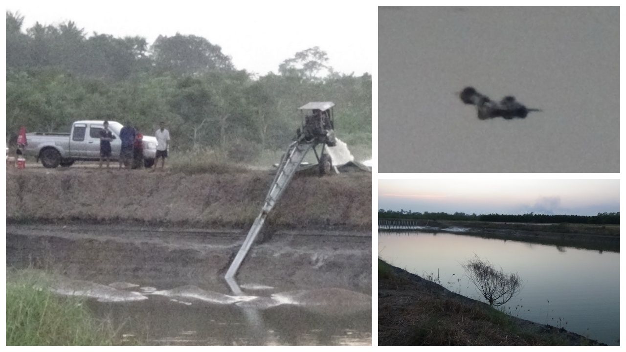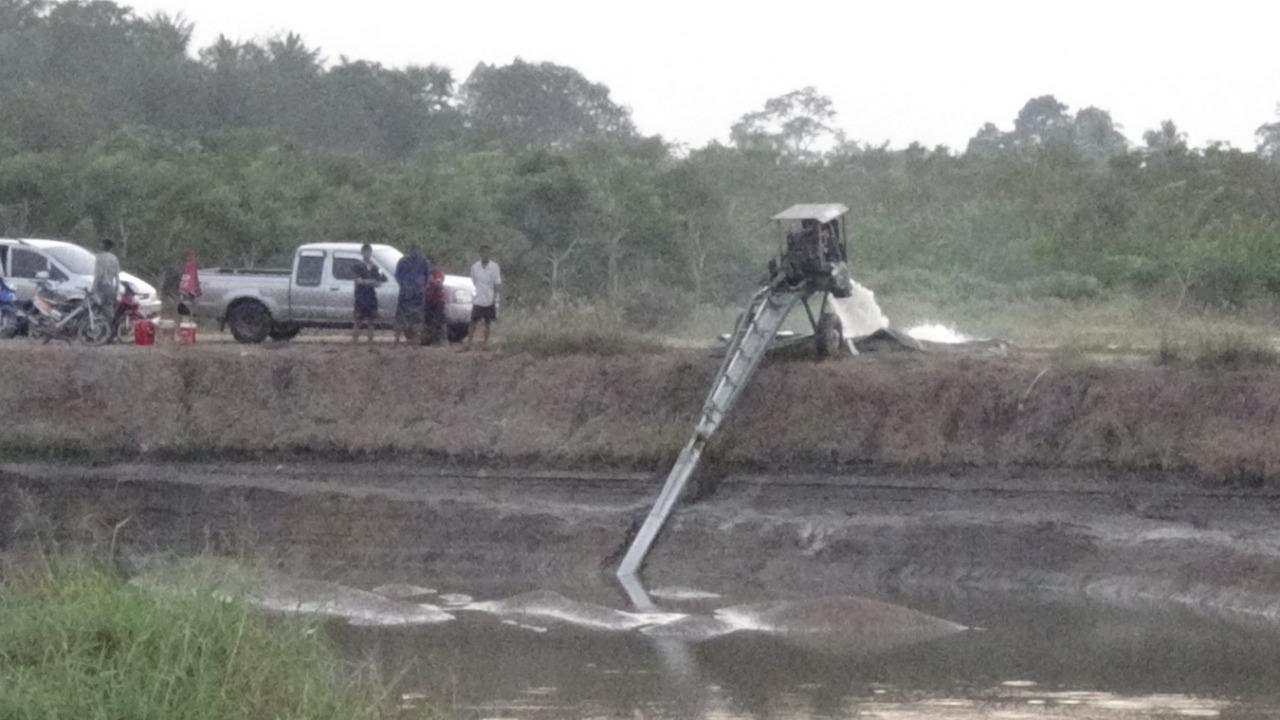 เมื่อมาตรวจดูก็พบว่ามีจระเข้ตัวขนาดใหญ่ลอยหัวอยู่ในบ่อปลาจึงประสานไปยังหน่วยราชการและทางอำเภอแสวงหาได้ทำการจัดท่อสูบน้ำพญานาคขนาดใหญ่มาทำการสูบน้ำในบ่อให้แห้เพื่อหวังในการจับจระเข้ โดยทำการสูบมาตั้งแต่เช้ายันค่ำน้ำในบ่อมีจำนวนมาก และยุบลงไปประมาณครึ่งบ่อ และก็พบว่าจระเข้ก็โผล่ลอยหัวขึ้นมาเป็นระยะ