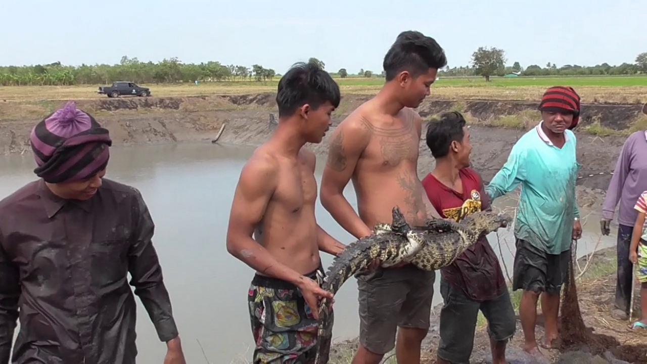 รวบได้แล้วจระเข้ยาวร่วม 2 เมตร ที่ลงไปอยู่ในบ่อปลา ประมงจังหวัด เร่งสูบน้ำนำอวนลงไปลากจับตัว ก่อนจนมุมด้วยแหของชาวบ้าน ส่งไปพักฟื้นศูนย์วิจัยและการพัฒนาเพาะเลี้ยงพันธุ์สัตว์ฯ อ่างทอง...