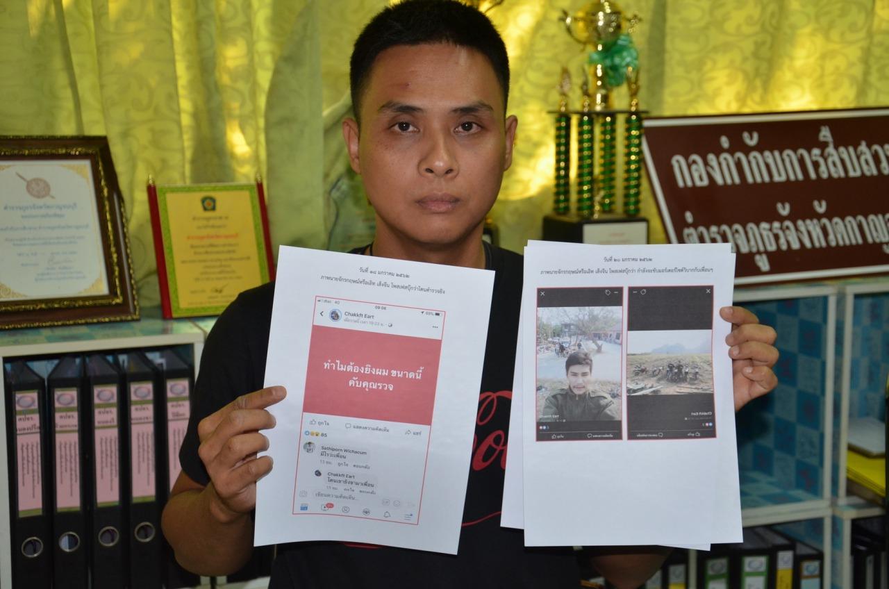 ด.ต.ชาคริต กล่าวต่อว่า จนท.จึงได้ประชุมวางแผน มอบหมายให้ตนปลอมตัวเป็นชาวบ้าน ทำทีขับขี่รถจักรยานยนต์ส่วนตัว โดยแต่งกายชุดนอกเครื่องแบบ สะพายเป้ที่หลัง ทำทีขับขี่รถตามเส้นทางเปลี่ยว โดยให้เจ้าหน้าที่ชุดสืบสวน ขับรถยนต์ส่วนตัวตามไปห่างๆ เพื่อให้สามารถสนับสนุนการปฏิบัติได้ทันทีที่มีเหตุ และเมื่อตนขับขี่รถจักรยานยนต์ มาถึงถนนเลียบทางรถไฟบริเวณสามแยกเตาปูน-หนองหญ้า หมู่ 3 ต.หนองหญ้า อ.เมือง จ.กาญจนบุรี ตนสังเกตเห็นชายวัยรุ่น คือนายจักรกฤษณ์ หรือเอิร์ท เดินออกมาจากบริเวณหน้าบ้าน พบในมือขวาถืออาวุธปืน แล้วตะโกนเรียกให้ตนหยุดรถ ว่า "เฮ้ยจอดๆ" แต่ขณะนั้นตนไม่ได้จอดรถ เพราะเกรงจะได้รับอันตราย