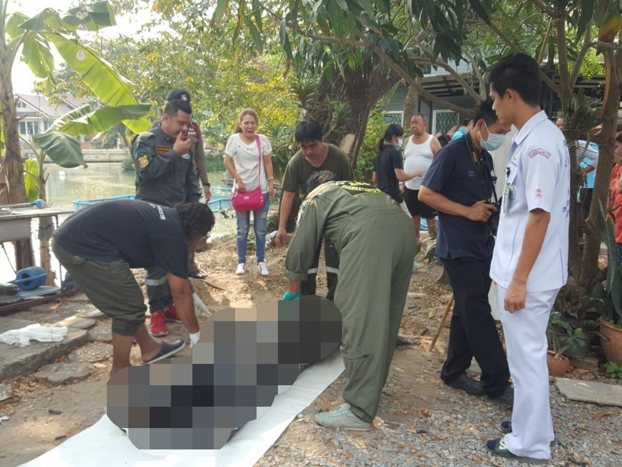 เมื่อเวลา 10.10 น. วันที่ 12 ก.พ. 62 ร.ต.อ.กฤษณะ คำกังวาฬ รอง สว.(สอบสวน) สภ.สามโคก จ.ปทุมธานี ได้รับแจ้งมีเหตุคนจมน้ำเสียชีวิตภายในบ่อน้ำหลังบ้านหลังหนึ่งในพื้นที่ ม.6 ต.บางเตย อ.สามโคก จ.ปทุมธานี จึงพร้อมด้วย ร.ต.อ.ธวัช ด้วงบัว รอง สวป.ฯ กำลังชุดสืบสวน แพทย์เวรจากสถาบันนิติวิทยาศาสตร์ กระทรวงยุติธรรม และอาสาสมัครมูลนิธิร่วมกตัญญู ในที่เกิดเหตุ เป็นบ้านลักษณะคล้ายออฟฟิศ มีรั้วรอบขอบชิด ปลูกในเนื้อที่ประมาณ 3 ไร่ หลังบ้านซึ่งเป็นบ่อเลี้ยงปลานาๆชนิด