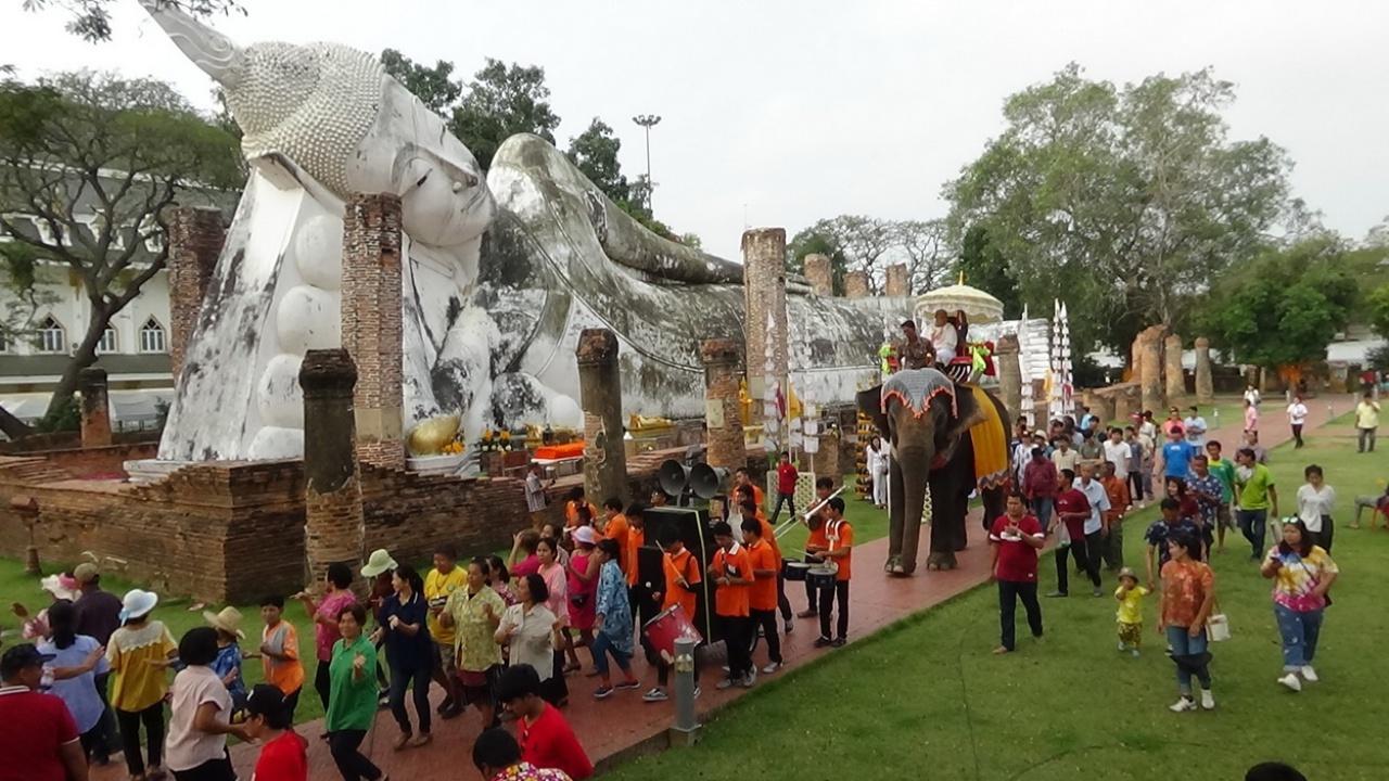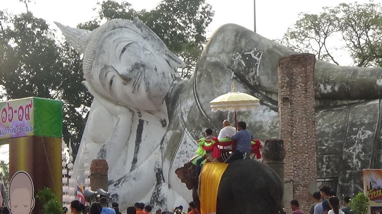 วันที่ 16 ก.พ. ฮือฮา ขี่หลังช้างแก้บน พร้อมแตรวงและนางรำ ที่บริเวณพระนอนวัดขุนอินทประมูล ตำบลอินทประมูล อำเภอโพธิ์ทอง จังหวัดอ่างทอง โดยมีนาคภวัต เมฆกระจาย ได้ขี่หลังช้างเชือกใหญ่แก้บนรอบองค์พระนอนพระพุทธไสยาสน์ขุนอินทประมูล พร้อมด้วยนางรำและแตรวงบรรเลงเพลงอย่างสนุกสนาน สร้างความตื่นตาให้แก่นักท่องเที่ยวที่เดินทางมากราบไหว้พระนอนพระพุทธไสยาสน์ขุนอินทประมูล ที่ยาวที่สุดของประเทศไทย ต่างได้นำโทรศัพท์มือถือถ่ายรูปไว้เป็นที่ระลึก และแชร์ผ่านสังคมออนไลน์กันอย่างคึกคัก