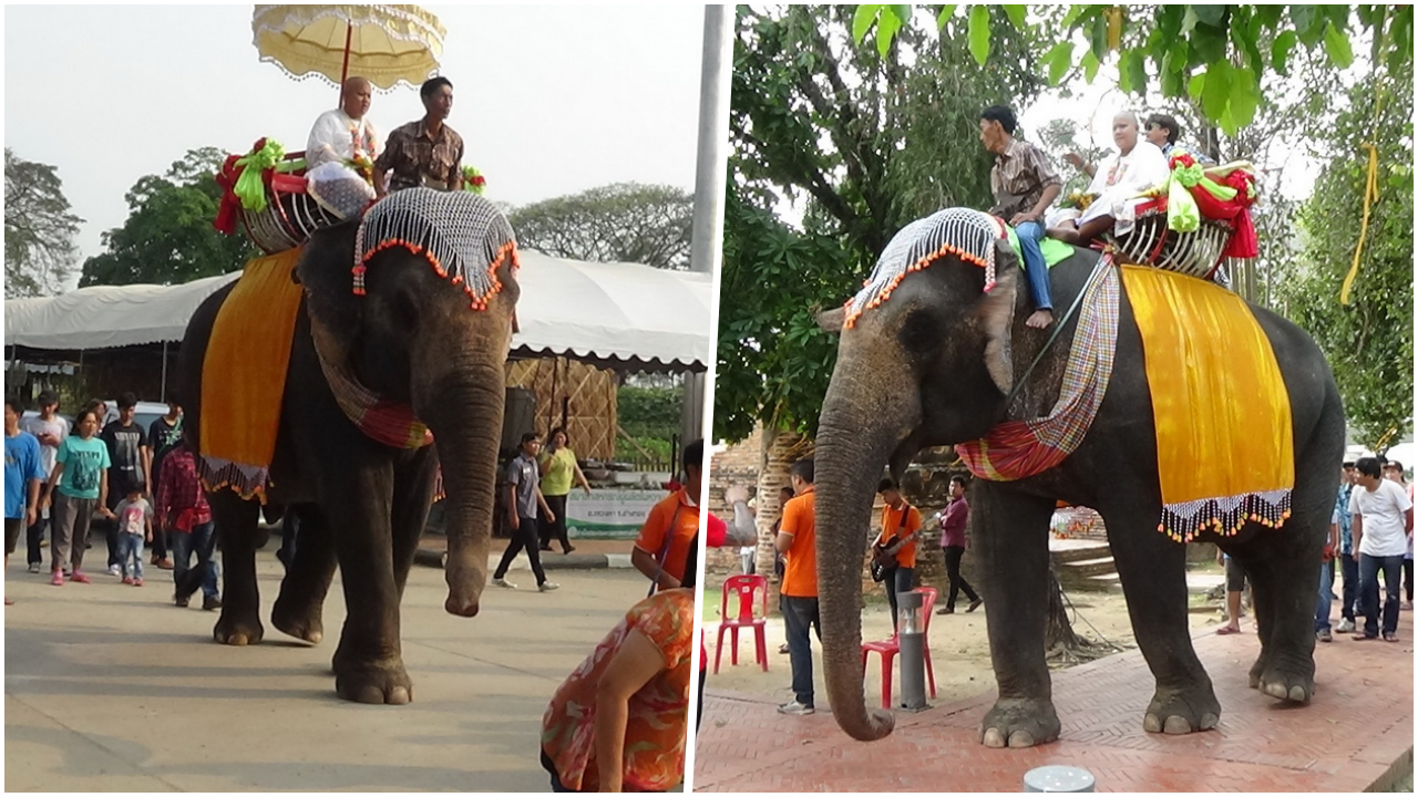 อ่างทองฮือฮา ขี่หลังช้างแก้บน ที่บริเวณพระนอนวัดขุนอินทประมูล พร้อมแตรวงและนางรำ ด้านพ่อนาค เผย ได้ทำการบนบานศาลกล่าว หลังลูกชายคลอดมาตัวขาว ผิวพรรณสวยงามไม่เหมือนพ่อแม่