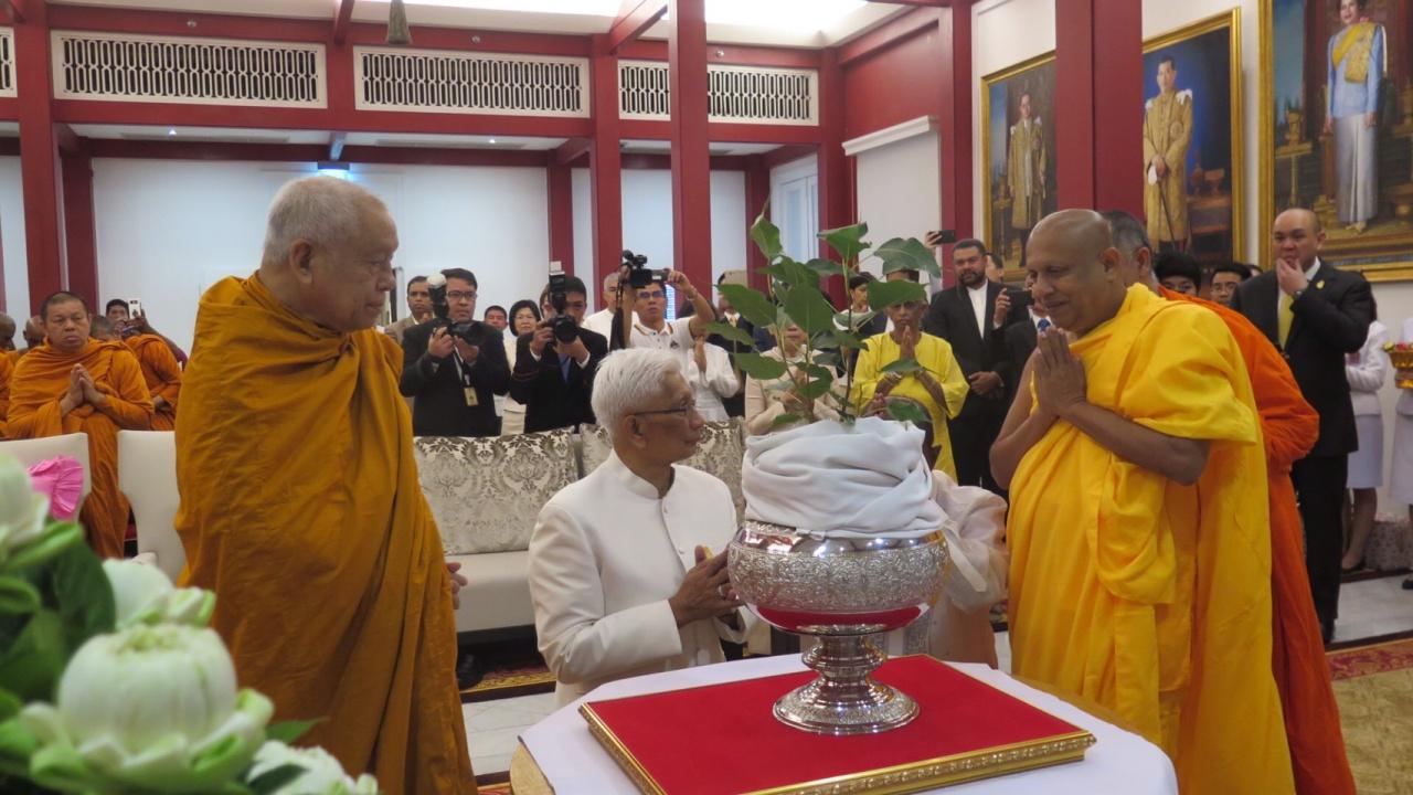 วันที่ 18 ก.พ. 62 ผู้สื่อข่าวรายงานว่า ที่ห้องรับรองพิเศษ ท่าอากาศยานสุวรรณภูมิ ผู้แทนคณะสงฆ์ไทย นำโดย พระโสภณวชิราภรณ์ (ไสว โชติโก) ผู้ช่วยเจ้าอาวาสวัดอรุณราชวราราม รองอธิการบดีฝ่ายกิจการต่างประเทศ มหาวิทยาลัยมหาจุฬาลงกรณราชวิทยาลัย (มจร) และพระศากยวงศ์วิสุทธิ์ (อนิลมาน ธมฺมสากิโย) ผู้ช่วยเจ้าอาวาสวัดบวรฯ อาจารย์มหาวิทยาลัยมหามกุฏราชวิทยาลัย (มมร.) ได้อัญเชิญ หน่อต้นพระศรีมหาโพธิ์ จากประเทศศรีลังกามาถึงประเทศไทย ตามที่รัฐบาลศรีลังกามีความประสงค์ที่จะมอบหน่อต้นพระศรีมหาโพธิ์ดังกล่าวให้กับรัฐบาลไทย เนื่องในโอกาสพระราชพิธีบรมราชาภิเษก
