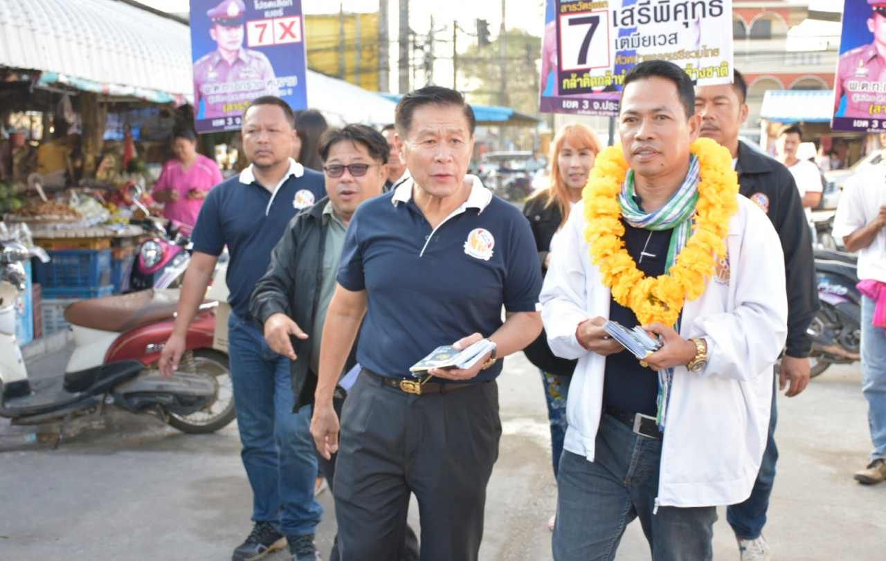 หัวหน้าพรรคเสรีรวมไทย นำ "สารวัตรเอก กระบะท้าย" คนดัง ที่ลาออกมาสมัคร ส.ส.เขต 3 ประจวบฯ เดินหาเสียง ประกาศอาสาเป็นนายกฯ ยืนยันไม่ร่วมกับพรรคเผด็จการ