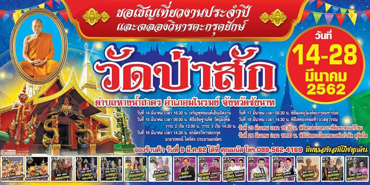 "จึงอยากเชิญชวน ผู้ที่สนใจมาร่วมงานประจำปี ไหว้พระแก้วมรกต เดินลอดตะกรุดยักษ์ได้ภายในงานที่จัดขึ้น 15 วัน 15 คืน มีมหรสพ ทั้งการแสดงโขน ลิเกชื่อดัง นักร้องลูกทุ่งชื่อดังอย่าง สดใส รุ่งโพธ์ทอง ศรเพชร ศรสุพรรณ ทศพลหิมพานต์ ชมฟรีตลอดงาน"