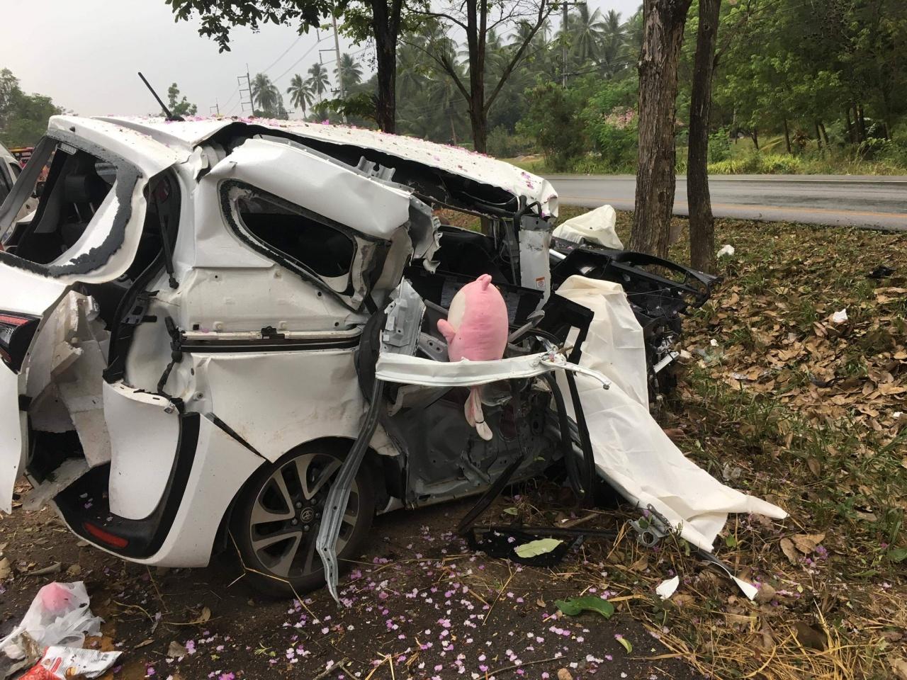 เก๋งครอบครัวกลับจากนครพนมมุ่งหน้าไปกระบี่ มาถึง อ.บางสะพาน พ่อเกิดหลับในเสียหลักชนต้นไม้ รถพังยับดับคาพวงมาลัย ลูกสาวร่างกระเด็นออกมาเสียชีวิตบนถนน ส่วนแม่กับลูกชายบาดเจ็บสาหัส...