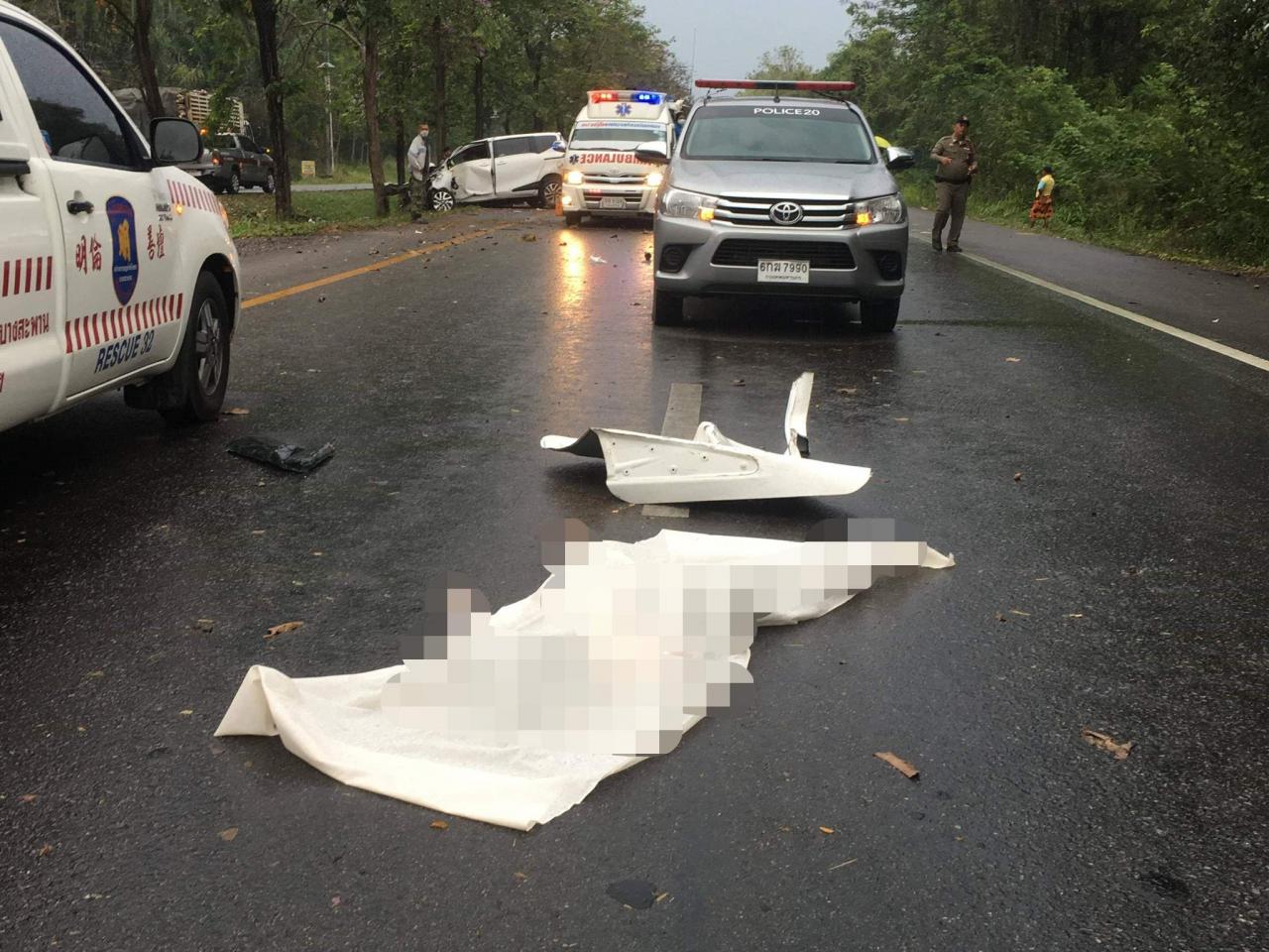 จากการสอบสวนทราบว่า รถคันดังกล่าว นายวีระ ปราจี เป็นคนขับเดินทางมาจาก จ.นครพนม มุ่งหน้า จ.กระบี่ เมื่อมาถึงจุดเกิดเหตุคาดว่าคนขับน่าจะมีอาการหลับในจึงทำให้รถเสียหลักลงข้างทางพุ่งชนต้นไม้ใหญ่บริเวณร่องกลางถนนเสียชีวิตคาพวงมาลัย และทำให้ ด.ญ.จีราพร บุตรสาว กระเด็นออกมานอกตัวรถเสียชีวิตอยู่กลางถนนห่างจากจุดเกิดเหตุประมาณ 30 เมตร โดยภรรยาและบุตรชายได้รับบาดเจ็บสาหัส เจ้าหน้าที่ได้เก็บรวบรวมหลักฐานในที่เกิดเหตุ ก่อนสรุปหาสาเหตุที่แท้จริงของอุบัติเหตุครั้งนี้ต่อไป.