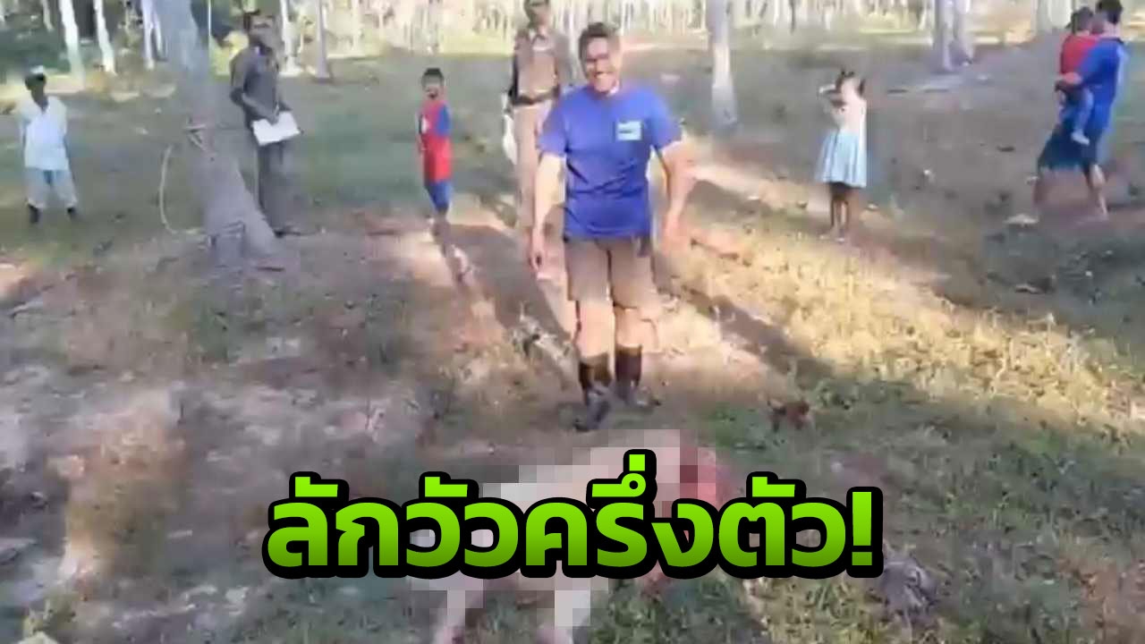 เจ้าของวัวเพศเมีย ราคา 3 หมื่น เดินมาตอนเช้าจะนำวัวไปเลี้ยง พบวัวทั้งตัวเหลือแค่ 2 ขา คนร้ายใจเหี้ยมเชือดสดๆ เอาเนื้อ เครื่องใน ทิ้งซากประจานความโหดในสวนมะพร้าวที่บางสะพานน้อย