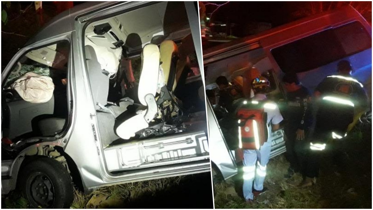 เมื่อเวลา 02.30 น. วันที่ 7 เม.ย. ร.ต.ท.อัครวิทย์ ไชยศรี ร้อยเวรสอบสวน สภ.ชะอำ รับแจ้งอุบัติเหตุรถตู้นักเรียนชนต้นไม้ร่องกลางถนน บริเวณหลัก กม.ที่ 21+900 ถนนบายพาสชะอำ-ปราณบุรี ขาเข้า กทม. ต.สามพระยา อ.ชะอำ จ.เพชรบุรี เบื้องต้นมีผู้ได้รับบาดเจ็บหลายรายและติดภายในรถ โดยเป็นรถตู้ ยี่ห้อนิสสัน สีบรอนซ์ ทะเบียน ก 0661 นราธิวาส ป้ายแดง ในสภาพด้านหน้ารถชนอัดติดกับต้นไม้ร่องกลางถนนพังยับเยิน มีนายภาคีม แดงเต๊ะ อายุ 31 ปี ชาวนราธิวาสเป็นคนขับ ติดภายในซากรถ เจ้าหน้าที่กู้ภัยต้องใช้เครื่องตัดถ่างช่วยนำตัวออกมาจากรถได้สำเร็จ โดยใช้เวลาประมาณ 30 นาที ก่อนนำส่งไปรักษาตัวที่ รพ.ชะอำ