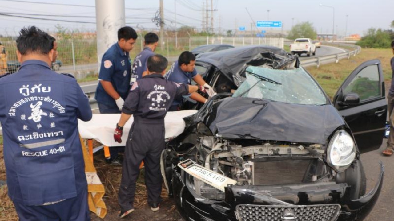 เมื่อเวลา 07.30 น. วันที่ 8 เม.ย. พ.ต.ต.นักรบ ศิริพันธ์ สว.(สอบสวน) ทางหลวงที่ 2 กองกำกับการ 8 ทางหลวง มอเตอร์เวย์ จุดพักรถเขาดิน พร้อมหน่วยกู้ภัยฉะเชิงเทรา และอุปกรณ์ตัดถ่าง ตรวจสอบเหตุรถเก๋งชนเสาป้ายบอกทาง บนถนนมอเตอร์เวย์ กม.47+500 ขาเข้า กทม. หมู่ 5 ต.ท่าสะอ้าน อ.บางปะกง พบรถเก๋ง ยี่ห้อนิสสัน มาร์ช สีดำ ทะเบียน 4 กฒ 5169 กรุงเทพมหานคร เสียหลักชนเสาป้ายบอกทางข้างทางเต็มแรง ทำให้นายโศธิน อุนาศรี อายุ 41 ปี คนขับเสียชีวิตติดภายในซากรถ