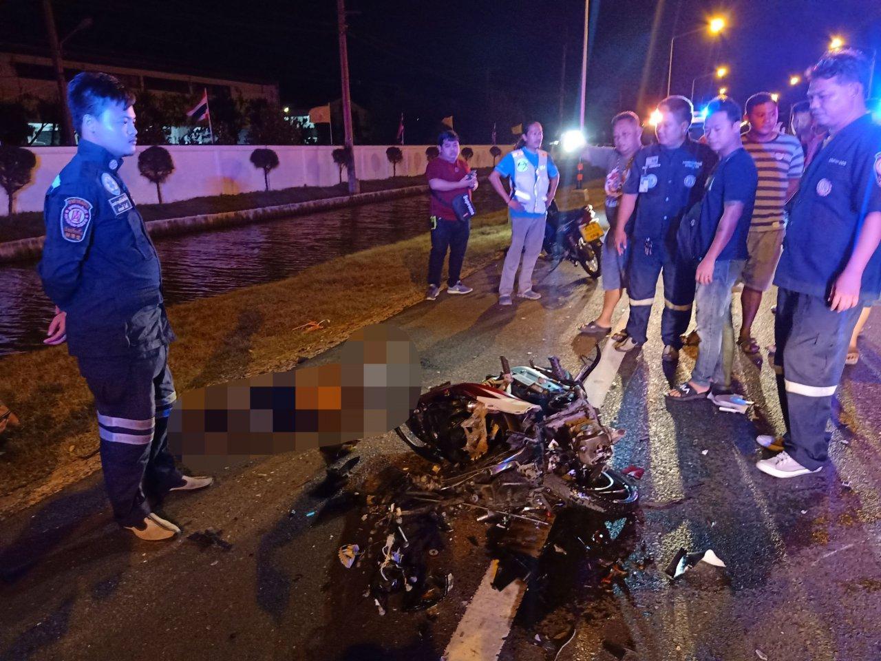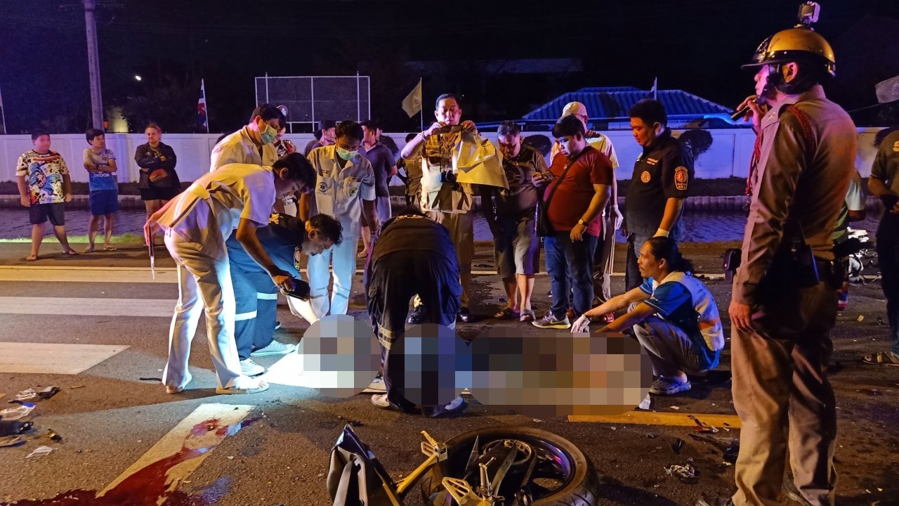 เมื่อเวลา 02.30 น. วันที่ 28 เมษายน 2562 พ.ต.ท.สุนทร พิมพ์พันธุ์ สว.(สอบสวน) สภ.พระสมุทรเจดีย์ จังหวัดสมุทรปราการ ได้รับแจ้งมีอุบัติเหตุรถ จยย.ชนกัน มีผู้เสียชีวิตเป็นชาย 2 ราย ถนนสุขสวัสดิ์ป้อมพระจุล ม.2 ต.แหลมฟ้าผ่า อ.พระสมุทรเจดีย์ จ.สมุทรปราการ จึงพร้อมด้วยแพทย์เวรโรงพยาบาลพระสมุทรเจดีย์สวาทยานนท์ และมูลนิธิป่อเต็กตึ๊ง เข้าตรวจสอบที่เกิดเหตุ
