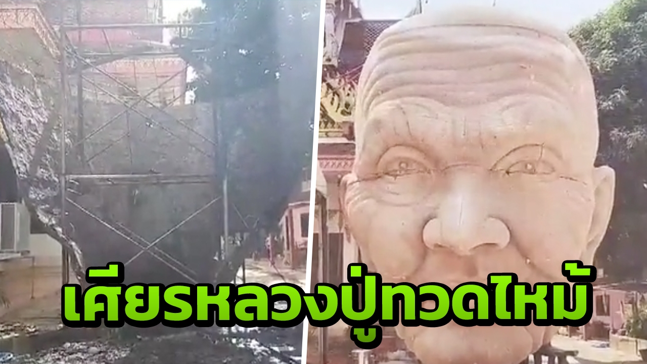 เกิดเหตุไฟไหม้ "เศียรหลวงปู่ทวด" กำลังสร้าง ภายในวัดโพธิ์ทอง จ.ปราจีนบุรี ช่างเชื่อมหนีตาย กระโดดจากนั่งร้าน ทำให้รอดตายหวุดหวิด...
