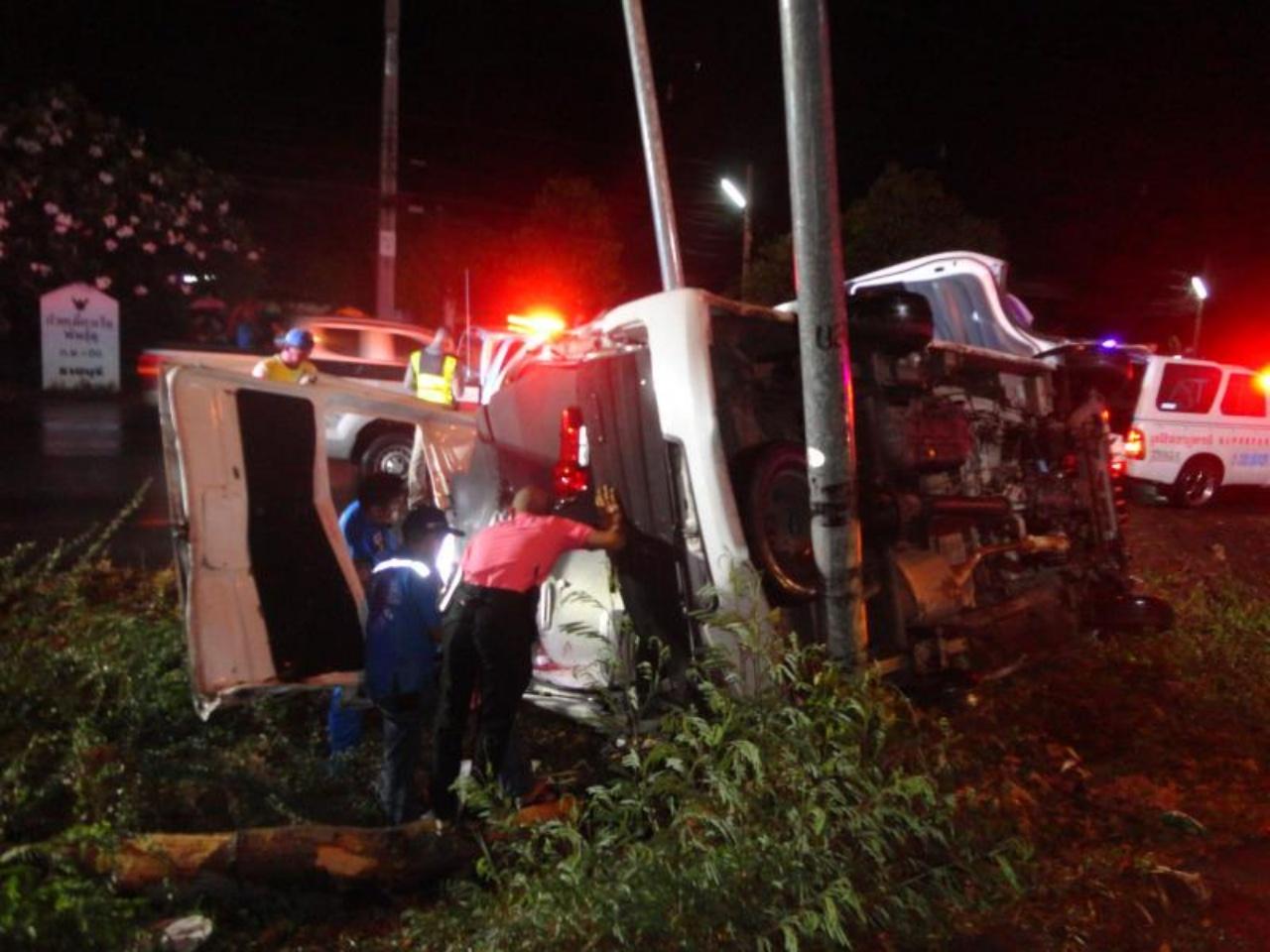 รถตู้โดยสาร สายกทม.-เพชรบุรี พลิกคว่ำฟาดต้นไม้ตกร่องถนน ตัวเมืองราชบุรี นศ.สาวปวช.คอหักดับ เจ็บอีก 12 ราย เหตุมอเตอร์ไซค์พ่วงข้าง วิ่งตัดหน้า ต้องเบรกกะทันหัน รถหมุนคว้างเสียหลัก จากถนนลื่นฝนตก...