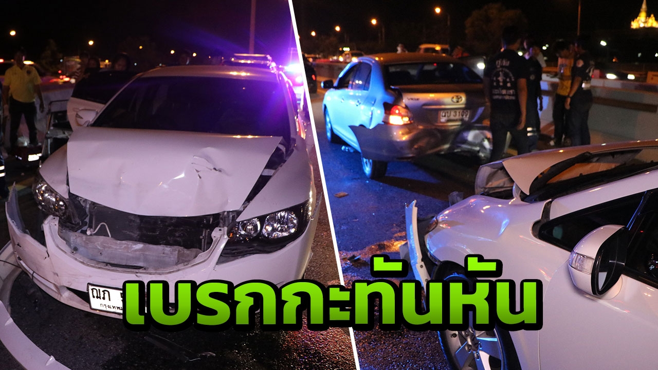 หนุ่มวัย 34 ขับเก๋งพาครอบครัวกลับบ้านที่ กทม. ระหว่างทางรถด้านหน้าเกิดเบรกกะทันหัน ทำรถ 3 คันชนท้ายบนมอเตอร์เวย์ บาดเจ็บ 4 ราย มีเด็กด้วย