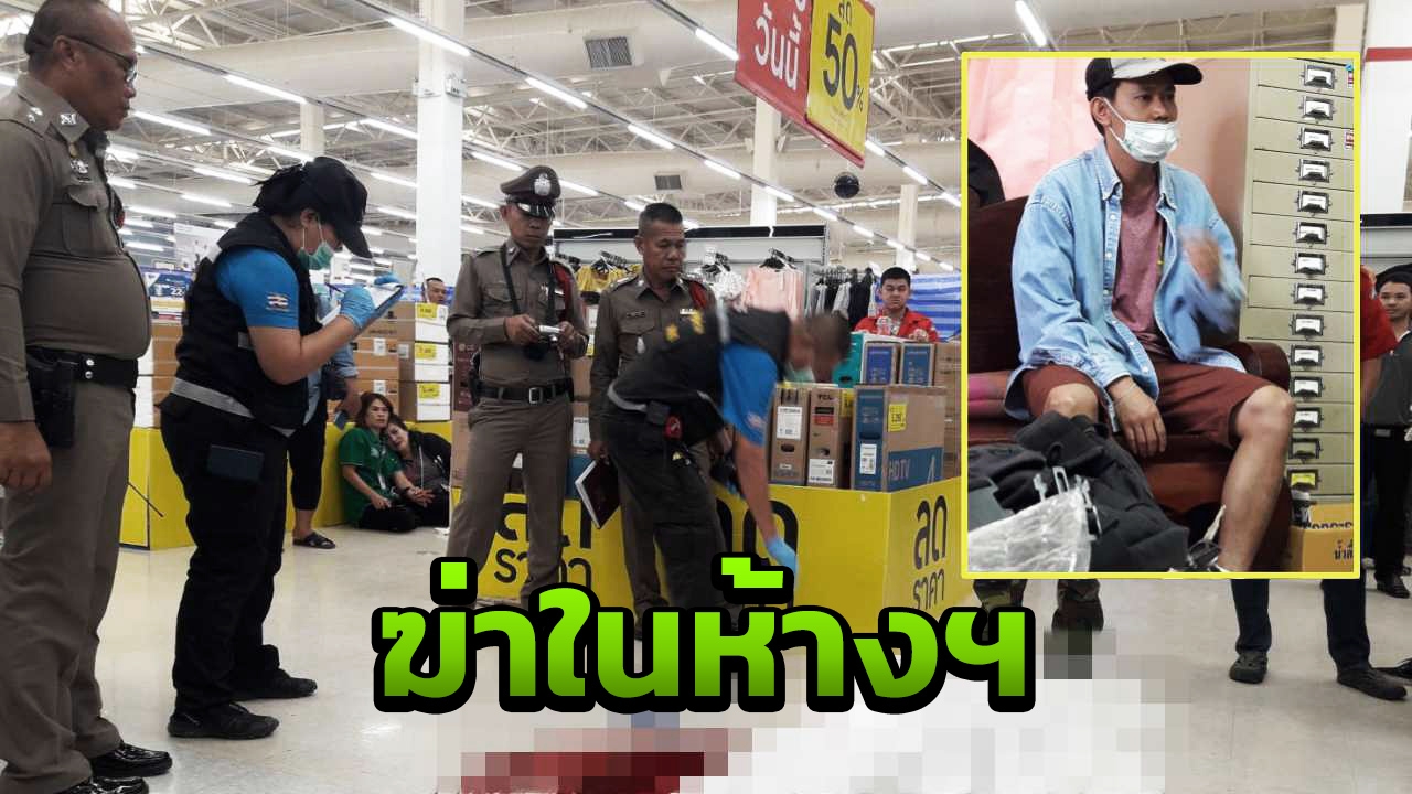 ผู้ต้องหา ให้การอีกว่า จนกระทั่งวันเกิดเหตุขณะที่ตนกำลังทำงานอยู่ภายในห้างโลตัส นายสุรินทร์ได้โทรศัพท์เข้ามาและข่มขู่ว่าเดี๋ยวจะไปหาตน ทำให้ตนเกิดระเเวงยิ่งขึ้น จึงนำมีดปลายแหลมที่วางขายอยู่ภายในห้างเก็บไว้ติดตัว กระทั่งนายสุริทร์เดินทางจากห้างบิ้กซีมาถึงห้างโลตัส เดินถือไขควงเดินปี่เข้ามาหาตน ทำให้ตนจำเป็นต้องชักอาวุธมีดออกมาจ้วงแทงนายสุรินทร์ก่อนเพื่อป้องกันตัว จากนั้นได้เยื้อยุดกันจนล้มลงกับพื้นทั้งคู่ ตนได้ปัดมือนายสุรินทร์จนไขควงกระเด็นหลุดออกจากมีอจึงเป็นโอกาสให้ตนได้กระหน่ำทั้งฟันทั้งแทงร่างของนายสุรินทร์ไปนหลายครั้ง แต่ไม่คาดคิดว่านายสุรินทร์จะเสียชีวิต จากนั้นได้รีบหนี วิ่งออกมาจากห้างแล้วขับขี่รถมาหลบซ่อนตัวอยู่ในป่าละเมาะหลังบ้าน แต่จำไม่ได้ว่าตนนำอาวุธมีดไปโยนทิ้งไว้ที่ไหน เนื่องจากขณะนั้นตนเกิดความตกใจ กระทั่งรุ่งเช้าตนได้ให้นายด๋ง บิดา ประสานกับนายปรีชา ผ่องใส กำนันตำบลท่ายาง พาเข้ามอบตัวกับเจ้าหน้าที่ตำรวจ สภ.ท่ายาง
