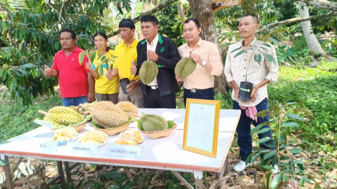 ทั้งนี้ เริ่มจาก เจ้าของสวนได้นำกิ่งพันธุ์ทุเรียนพันธุ์หมอนทองจาก จ.นนทบุรีมาปลูกในสวน เมื่อปี 2526 แต่หลังจากปลูกได้ระยะหนึ่ง ยอดของต้นทุเรียนเกิดหัก ต้นตอจากการเพาะเมล็ดทุเรียนไม่ทราบพันธุ์ จึงแตกยอดใหม่ขึ้นมา และได้ปล่อยให้ต้นทุเรียนเจริญเติบโตจนกระทั่งออกดอกและติดผลในปี 2533 พบว่า เนื้อทุเรียนต้นนี้มีความแตกต่างจากพันธุ์อื่น มีเนื้อแน่นละเอียด เหนียว ไม่เละง่าย มีเส้นใยน้อย สีเหลืองเข้มคล้ายทองคำ มีกลิ่นหอมเฉพาะตัว รสชาติมันอมหวาน เข้มปานกลาง น้ำหนักผลโดยเฉลี่ย 2-5 กิโลกรัม