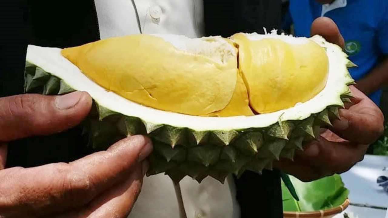 "ทองบางสะพาน" ทุเรียนพันธุ์ใหม่ เนื้อแน่นละเอียด เหนียว เส้นใยน้อย สีเหลืองเข้มคล้ายทองคำ มีกลิ่นหอมเฉพาะตัว รสชาติมันอมหวาน ผลักดันเป็นสินค้าอัตลักษณ์ชุมชนเชื่อมโยง ท่องเที่ยวเชิงเกษตร