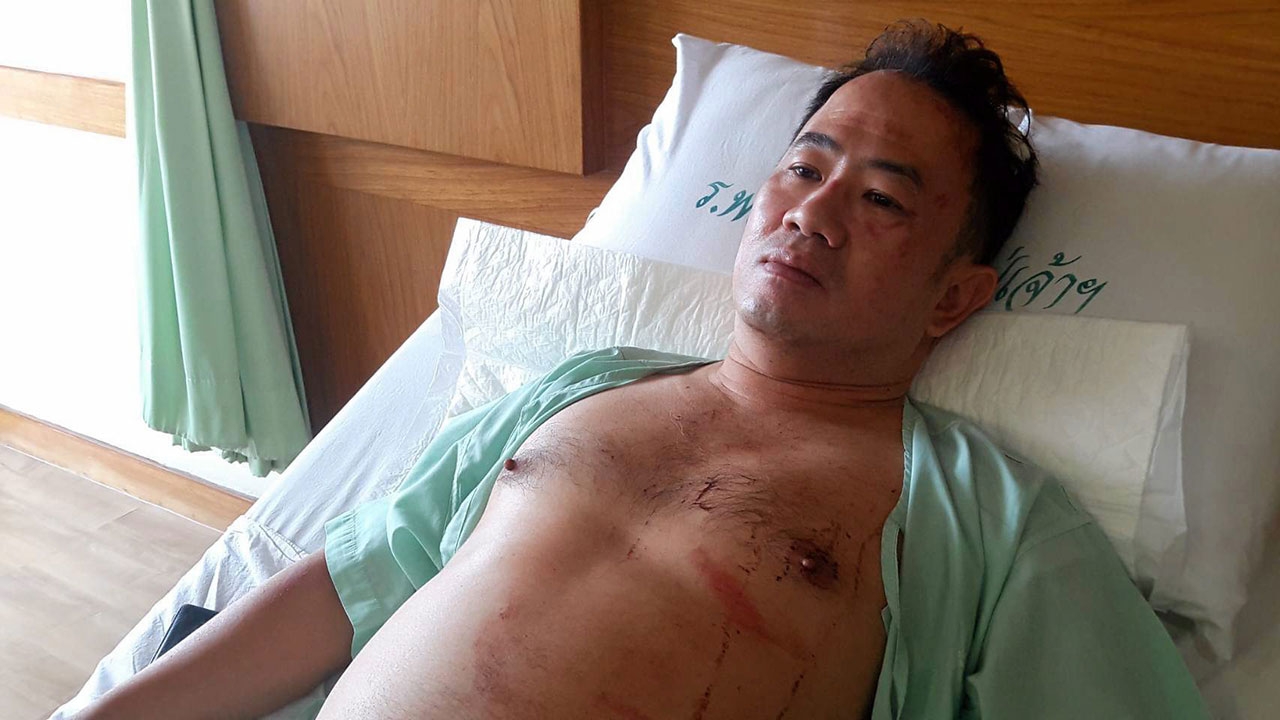 นายอนุรักษ์ เจนตวนิชย์ หรือ “ฟอร์ด เส้นทางสีแดง” นักเคลื่อนไหวทางการเมือง คนดังนอนซมอยู่ รพ.เมืองสมุทรปู่เจ้าฯ จ.สมุทรปราการ หลังถูกกลุ่มชายฉกรรจ์ 6-8 คน ดักรุมทำร้ายได้รับบาดเจ็บ ขณะขี่รถ จยย.ออกจากบ้านจะไปประท้วงการเปิดประชุมสภาผู้แทน ราษฎรนัดแรก.