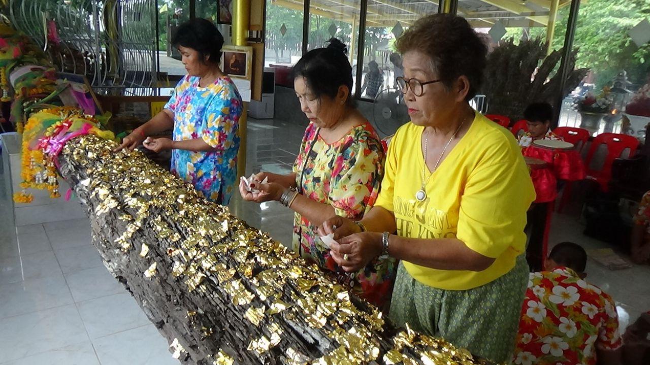 เมื่อวันที่ 29 พ.ค.2562 ที่บริเวณสวนป่าบ้านเสาร์ 5 เลขที่ 129 หมู่ที่ 4 ตำบลสาวร้องไห้ อำเภอวิเศษชัยชาญ จังหวัดอ่างทอง นางประทุม เรือนวิไล อายุ 54 ปี ชาวบ้าน ในอำเภอสามโก้ ได้ทำการว่าจ้างกลองยาว “คณะขวัญใจสาวร้องไห้” มาแก้บน “แม่แก้วเรือนทอง” ต้นตะเคียนในห้องกระจกติดแอร์ หลังจากงวดที่ผ่านมาได้เลขเด็ดไปเสี่ยงดวงและได้โชคลาภก้อนโต พร้อมร่วมกันรำแก้บนอย่างสนุกสนาน
