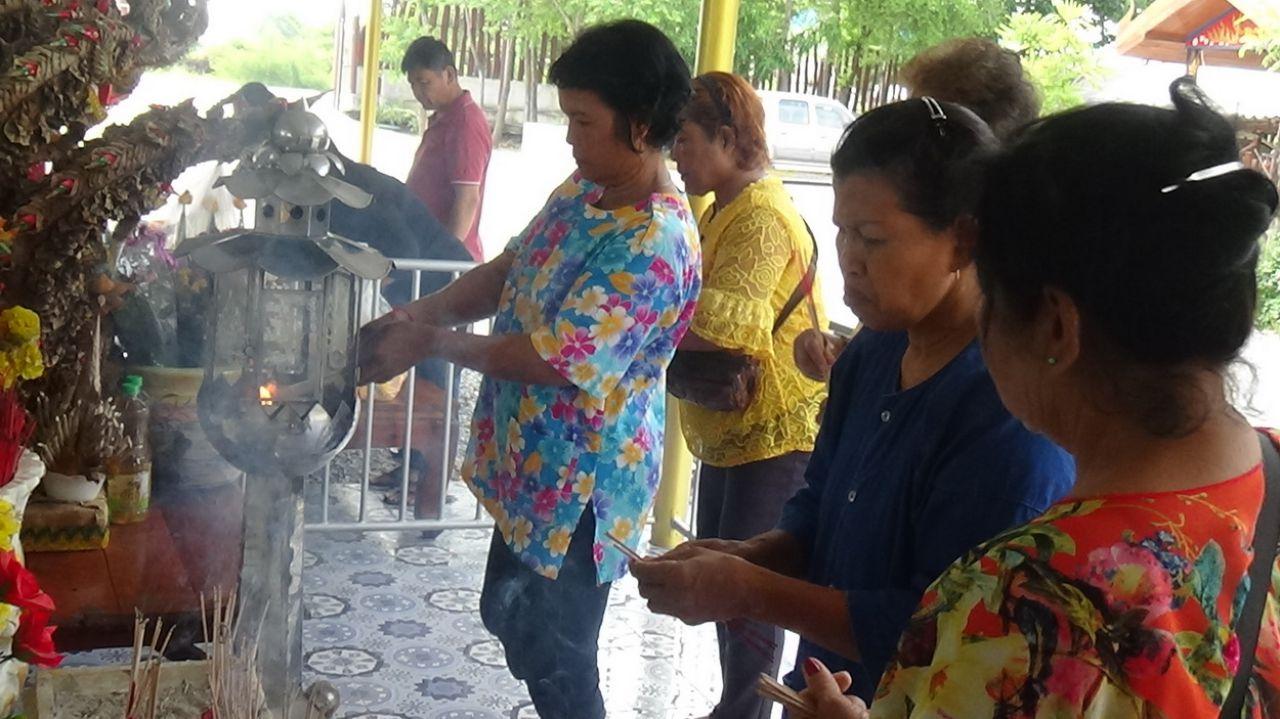 นางประทุม กล่าวว่า ตนเองและเพื่อนบ้านได้โชคลาภจาก “แม่แก้วเรือนทอง” มา 4 งวดติดแล้ว จึงว่าจ้างคณะกลองยาวมาแก้บน และยังมีชาวบ้านจำนวนมากที่ถูกเลขเด็ดต่างเดินทางมากกราบไหว้ ส่องขันน้ำมนต์ หาตัวเลขแม่แก้วเรือนทอง พร้อมได้ร่วมกันรำกลองยาวแก้บนกันอย่างคึกคัก