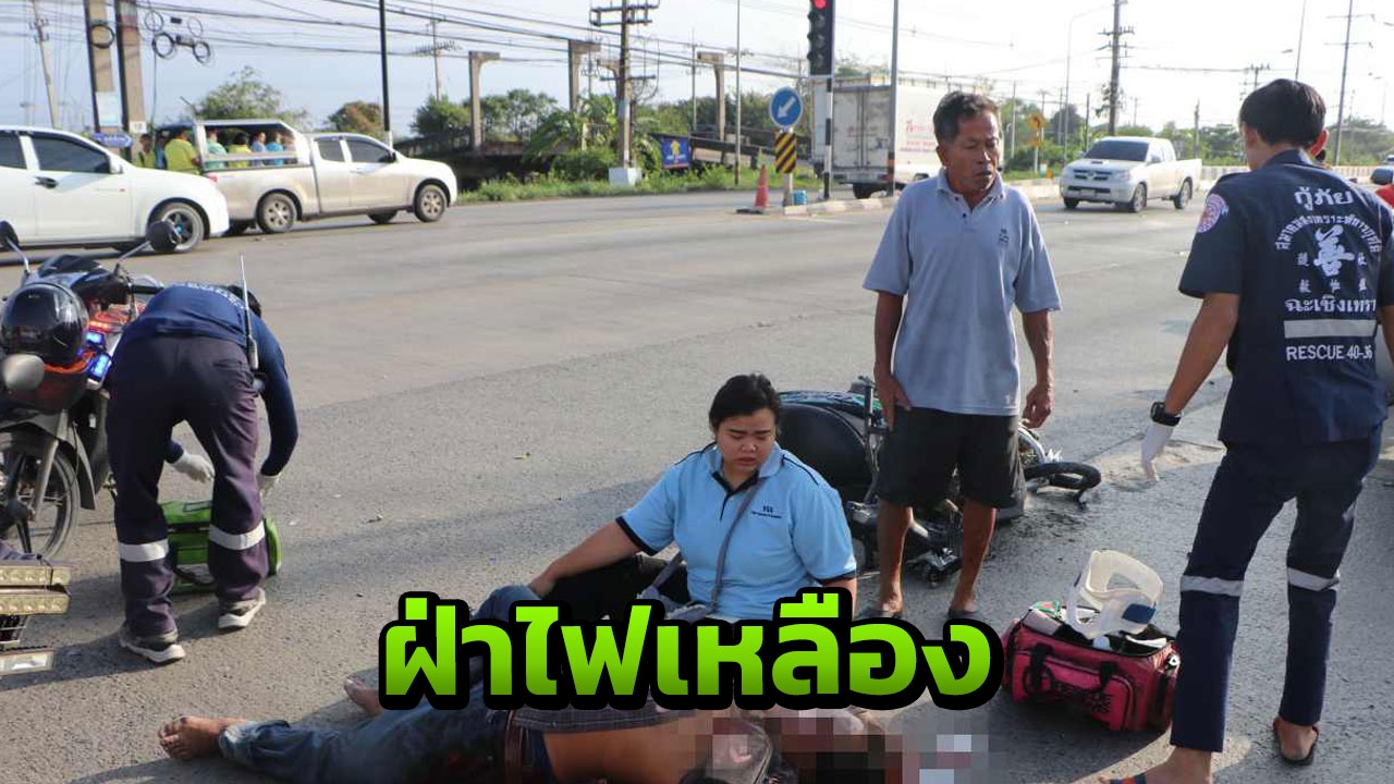 ผัวขี่ เมียซ้อนท้าย ถึงแยกไฟแดงที่บางปะกง ไฟเขียวดับเป็นไฟเหลือง รีบบึ่งข้ามแยกกะให้พ้น แต่ไม่พ้น รถตู้โผล่ตัดหน้าชนกันเต็มแรง บาดเจ็บทั้งคู่ ผัวอาการสาหัส