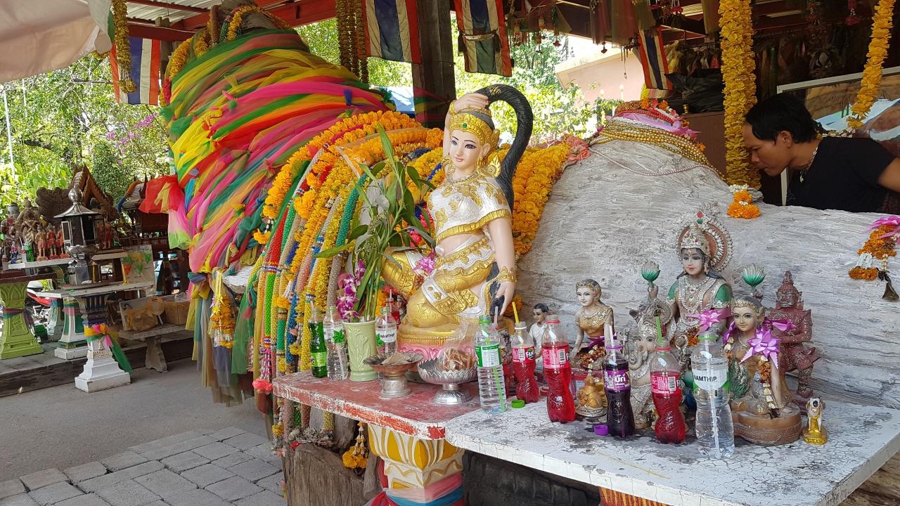 วันที่ 12 มิ.ย.62 ผู้สื่อข่าวรายงานว่า ที่วัดสว่างอารมณ์ ต.ขุนแก้ว อ.นครชัยศรี จ.นครปฐม มีสาธุชนเดินทางมาทำบุญ รวมทั้งมีนักเสี่ยงโชคเดินทางมาหาเลขเด็ดอย่างต่อเนื่อง โดยเฉพาะต้นตะเคียนทอง อายุ 200 ปี ขนาด 2 คนโอบ ที่ตั้งอยู่ด้านหน้าของศาลาการเปรียญ ที่ชาวบ้านนิมนต์อาจารย์แป๊ะ เกจิดังเจ้าอาวาส ไปอัญเชิญขึ้นจากบ่อทรายใน อ.บ่อพลอย จ.กาญจนบุรี และถวายให้นำมาอยู่ที่วัดสว่างอารมณ์ มาเมื่อ 5 ปี ที่แล้ว แต่ผู้คนยังไม่เสื่อมความเชื่อ ดูจากการบนถวายชุดไทย ล้นจนไม่มีที่แขวน
