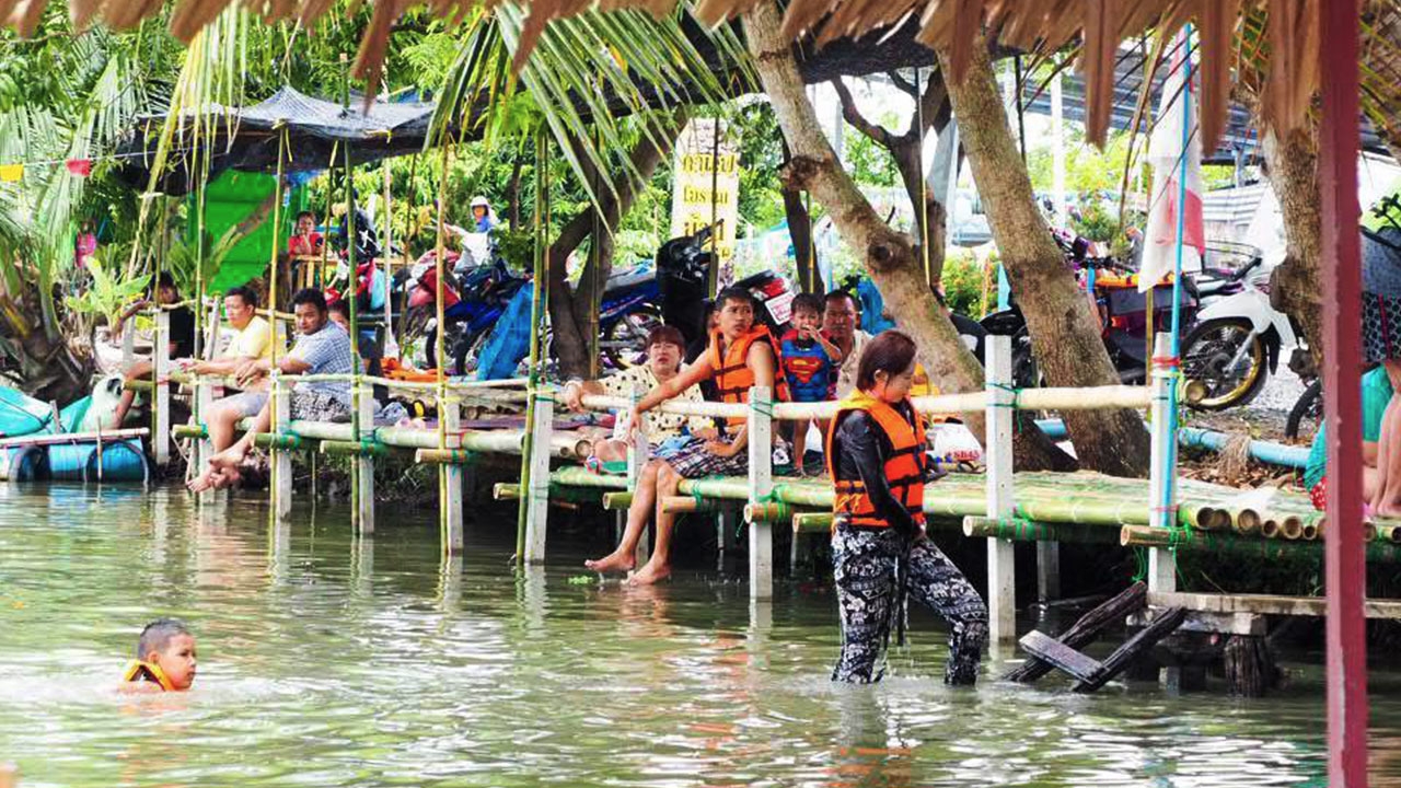 แต่สำหรับชุมชนบ้านคลองแค ต.หลักสาม อ.บ้านแพ้ว จ.สมุทรสาคร มีผู้ใหญ่ใจดีเนรมิตคลองชลประทาน D7 (คลองตาขำ) ให้กลายเป็นสวนน้ำสำหรับเด็กๆและคนในชุมชน