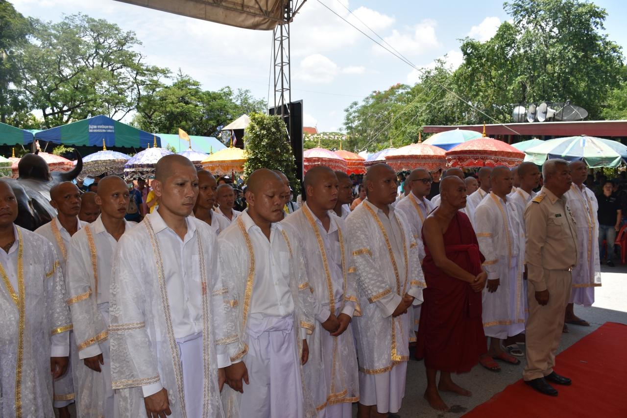 จนในช่วงเช้าก่อนเข้าบรรพชาเป็นสามเณะ และอุปสมบทเป็นพระภิกษุ อาจารย์แป๊ะ พร้อมด้วยผู้นำชุมชน และข้าราชการฝ่ายปกครอง ได้ประกอบพิธีนำนาคสาบานตนต่อหน้าพระบรมฉายาลักษณ์ รัชกาลที่ 10 และสมเด็จพระนางเจ้าสุทิดา พัชรสุธาพิมลลักษณ พระบรมราชินี ก่อนนำนาคแห่รอบพระอุโบสถ และเข้าพิธีบวช