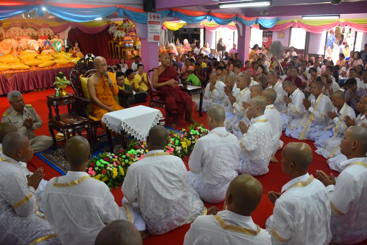 พิธีเริ่มตั้งแต่วันที่ 22 มิ.ย.เริ่มตั้งแต่ 12.00 น.เป็นต้นไป ผู้เข้าอุปสมบทจำนวน 32 คน พร้อมบรรดาญาติ ผู้ปกครอง และผู้ให้การอุปถัมภ์ ตั้งขบวนแห่นาคนำไปกราบไหว้สิ่งศักดิ์สิทธิวัดหลายแห่ง จนเสร็จสิ้นเดินทางกลับวัดมาประกอบพิธีอาบน้ำนาค โดยอาจารย์แป๊ะประกอบพิธีเทศนาก่อนสร้างความประทับใจทำให้ผู้คนและผู้ปกครองที่มาร่วมพิธีถึงกับหลั่งน้ำตา จากนั้นนำนาคเข้าสู่พิธีทำขวัญนาค โดยหมอทำขวัญศิลปินชื่อดังมาร่วม และมีคณะกลองยาว จากคณะดังจาก จ.สมุทรสาคร มาสร้างความคึกคัก