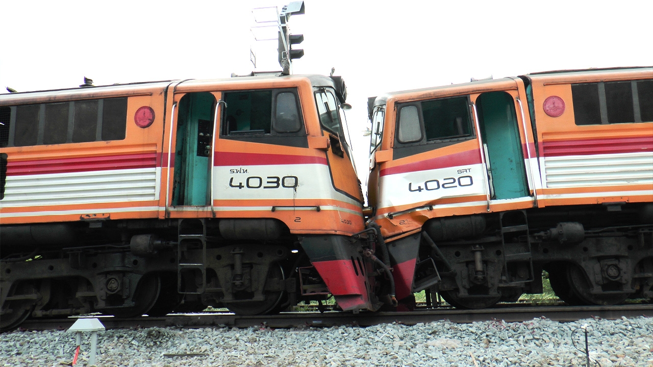 หัวจักรรถไฟ กำลังวิ่งจอดชานชาลาแก่งคอย สัญญาณสับรางเกิดขัดข้อง พุ่งชนหัวรถจักรอีกขบวน ส่งผลให้เกิดความเสียหาย ทำ พขร.บาดเจ็บ 3 คน