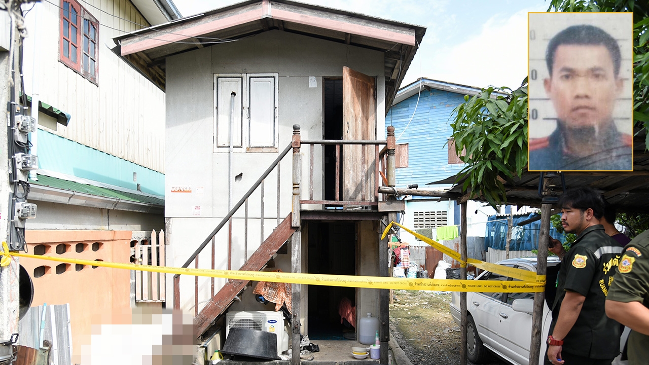 เจ้าหน้าที่ตรวจสอบจุดเกิดเหตุที่นายนิเวศน์ หรือไก่ พันทวี อายุ 37 ปี (ภาพเล็ก) ควงมีดไปทำร้ายนายสมชาย หรือตู่ กลิ่นประมูล อายุ 32 ปี คู่อริที่บ้านย่าน ต.คลองหนึ่ง อ.คลองหลวง จ.ปทุมธานี แต่ถูกเจ้าของบ้านใช้ปืนยิงสวนดับสยอง.