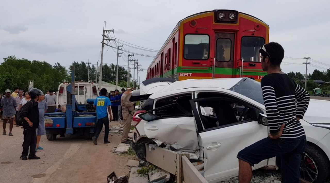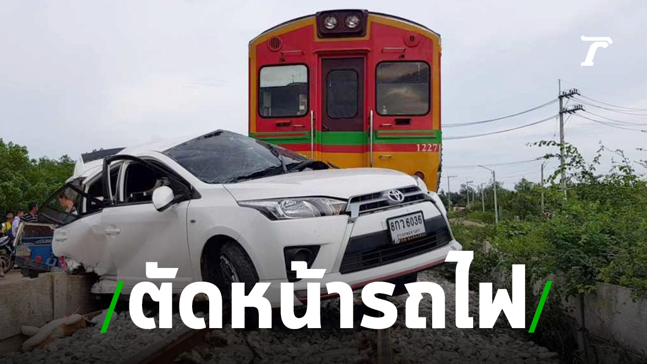 แม่ 1 พร้อมลูกอีก 3 คนขับเก๋งยาริสข้ามทางรถไฟหน้าวัดกาหลง สมุทรสาคร พขร.เห็นท่าไม่ดี เปิดหวูดแล้ว แต่เหมือนจะไม่ได้ยิน เตรียมพร้อมเบรก แล้วรถเก๋งก็ตัดหน้า ชนกันสนั่น ชาวบ้านวิ่งมาช่วยทุบกระจก ยังดีแค่บาดเจ็บ