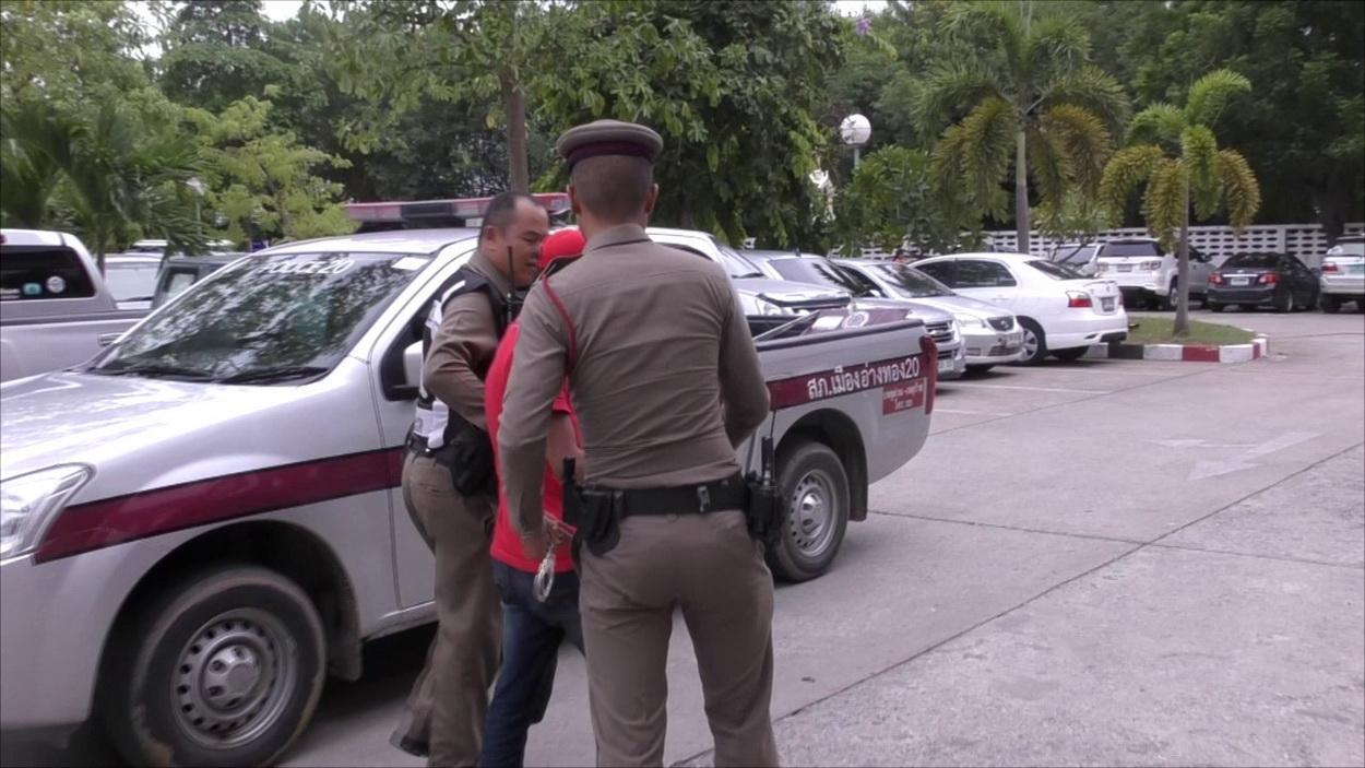 ในที่เกิดเหตุบริเวณชั้น 2 สำนักงานขนส่งจังหวัดอ่างทอง ซึ่งเป็นฝ่ายใบอนุญาตขับรถ เจ้าหน้าที่และพลเมืองดีควบคุมตัว ผู้ต้องหาเป็นชาย 1 ราย สวมเสื้อยืดคอกลมสีแดง กางเกงยีนส์ ทราบชื่อต่อมา นายเจษฎา ส่งบุญ อายุ 21 ปี อยู่บ้านเลขที่ 339 หมู่ที่ 10 ต.บ้านเก่า อ.เมืองกาญจนบุรี พร้อมหลักฐานเป็นโทรศัพท์มือถือที่ทำการถ่ายคลิป ยี่ห้อซัมซุง จำนวน 1 เครื่อง ทางเจ้าหน้าที่ตำรวจจึงได้ทำการควบคุมตัวไปสอบสวนที่ สภ.เมืองอ่างทอง ทำการสอบสวน
