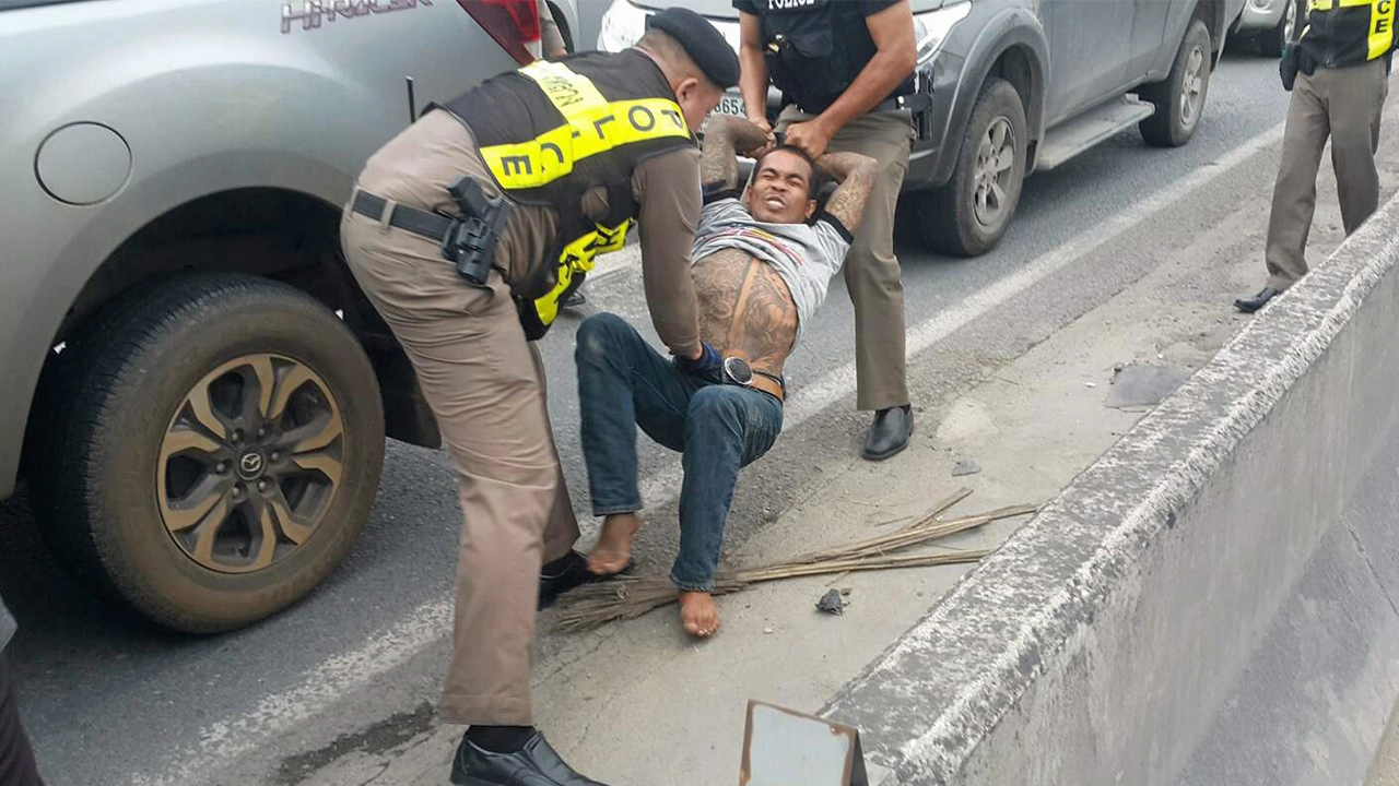 ตำรวจทางหลวงล็อกนายชูศักดิ์ ประจวบชูจิตร ผู้ต้องหาฆ่าผู้อื่น ขณะขับรถปิกอัพผ่านช่องทาง ด่วน กม.55 อ.วังน้อย จ.พระนครศรีอยุธยา หลังก่อเหตุแค่ข้ามคืน โดยประสานงานผ่าน “ไลน์กลุ่มสืบสวนประเทศไทย”.