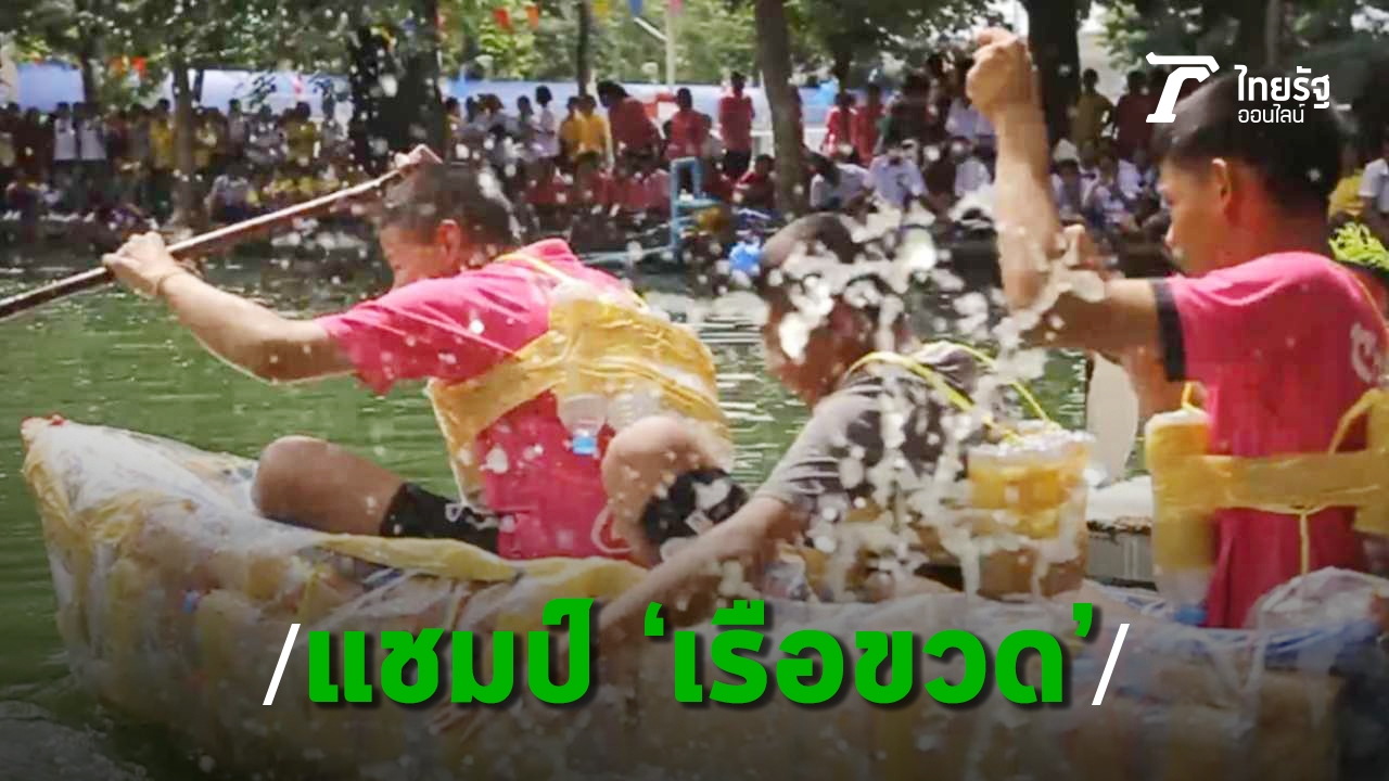 นักเรียนที่ชัยนาท นำขวดพลาสติกมาสร้างเรือ นำมาพายแข่ง ร่วมกิจกรรมสัปดาห์วันวิทยาศาสตร์แห่งชาติ กระตุ้นเห็นความสำคัญเทคโนโลยี อนุรักษ์สิ่งแวดล้อม