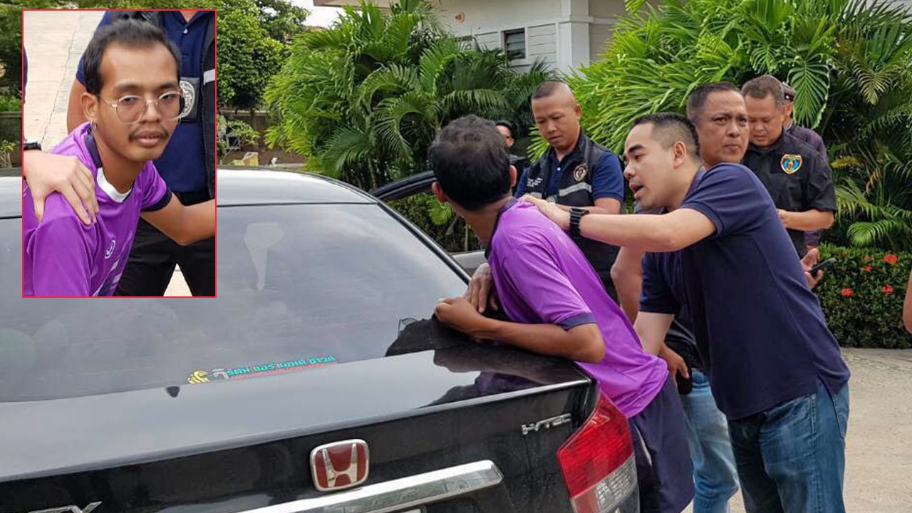 นาทีชุดสืบสวน กก.2 บก.ปคม.บุกรวบตัวนายชิษณุพงศ์ นาคเกษม หรือ “คิว อ่างทอง” อายุ 27 ปี (ภาพเล็ก) หลังตำรวจติดต่อล่อซื้อจนผู้ต้องหาหลงกลนำเด็กอายุ 17 ปี มาส่งค้ากามที่รีสอร์ตแห่ง หนึ่งใน จ.อ่างทอง.