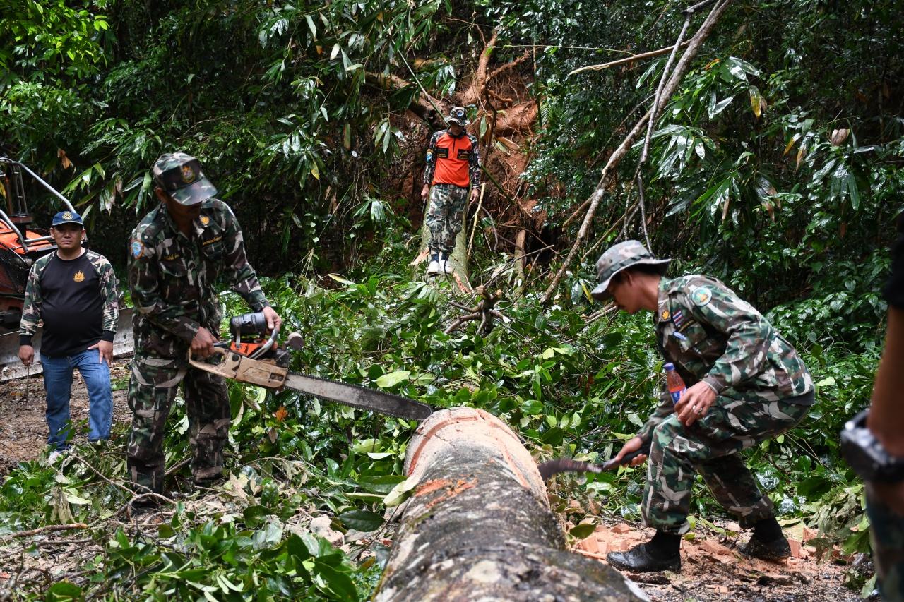นายมานะ เพิ่มพูล หัวหน้าอุทยานแห่งชาติแก่งกระจาน จ.เพชรบุรี เปิดเผยว่า ได้รับรายงานจากหัวหน้าหน่วยพิทักษ์อุทยานแห่งชาติที่ กจ.19 เขาพะเนินทุ่ง แก่งกระจาน ว่ามีดินถล่มปิดกั้นเส้นทางสายบ้านกร่าง-พะเนินทุ่ง บริเวณกิโลเมตรที่ 28-29 และมีต้นไม้ล้มตลอดเส้นทาง เนื่องจากมีฝนตกติดต่อกันหลายวัน ทำให้ไม่สามารถใช้รถยนต์ส่งกำลังเจ้าหน้าที่และเสบียงได้ จึงได้สั่งการให้เจ้าหน้าที่หน่วยพิทักษ์อุทยานแห่งชาติที่ กจ.19 เขาพะเนินทุ่ง และชุดกู้ภัยมวลชนสัมพันธ์ และช่วยชีวิตสัตว์ป่าอุทยานแห่งชาติแก่งกระจาน ร่วมกันดำเนินการตัดไม้ที่ล้มกีดขวางเส้นทาง และจัดหารถแทรกเตอร์ขับเคลื่อนสี่ล้อขึ้นไปเปิดเส้นทางให้สามารถสัญจรส่งกำลังและเสบียงได้