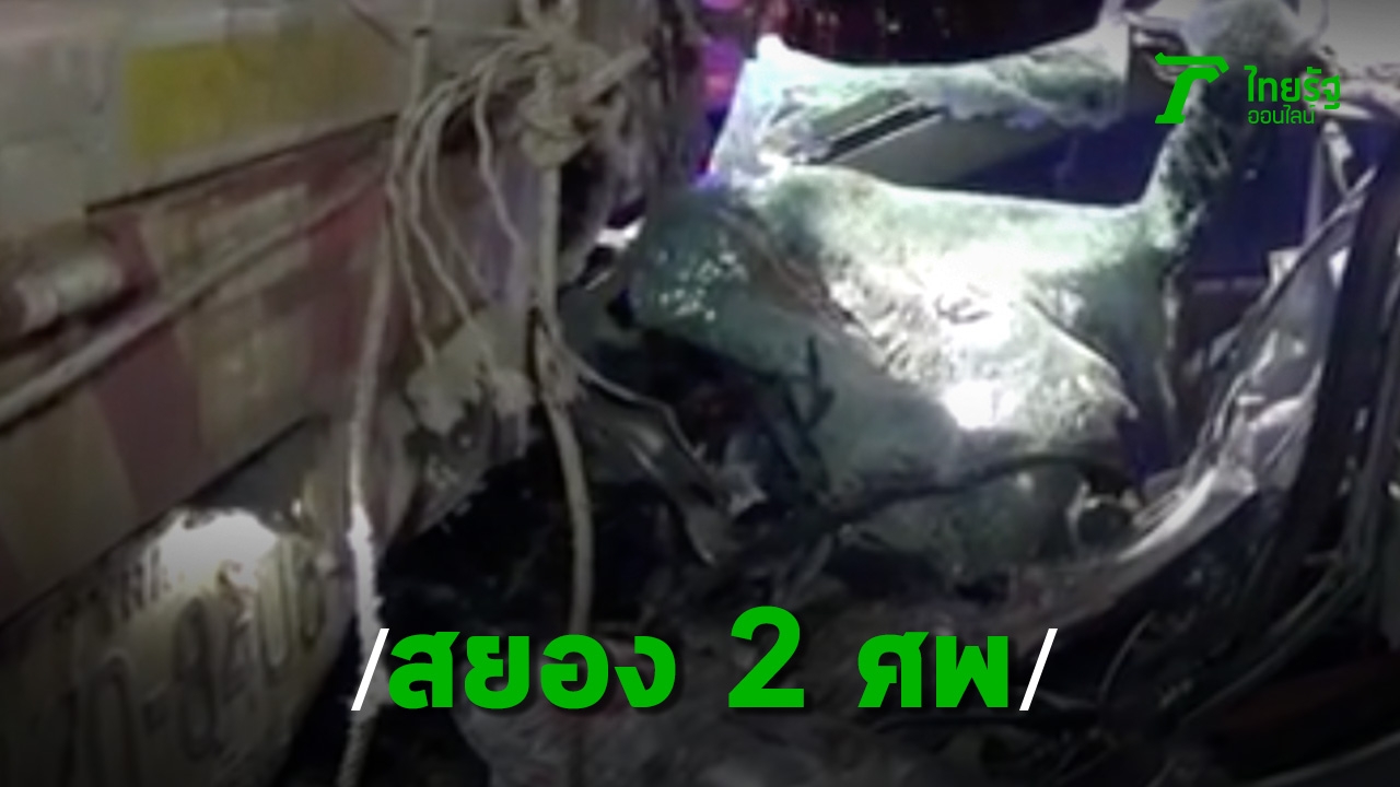 ดาบตำรวจพร้อมเพื่อนชายซิ่งเก๋งพุ่งชนท้ายรถพ่วงดับอนาถ 2 ศพ ในสภาพคนขับจับมือคนนั่งที่หัวเกียร์รถ บนถนนสายรังสิต มุ่งหน้าจังหวัดนครนายก ขณะที่อาสากู้ภัยฯ จุดบ้านนา เข้าช่วยใช้อุปกรณ์ตัดถ่าง...