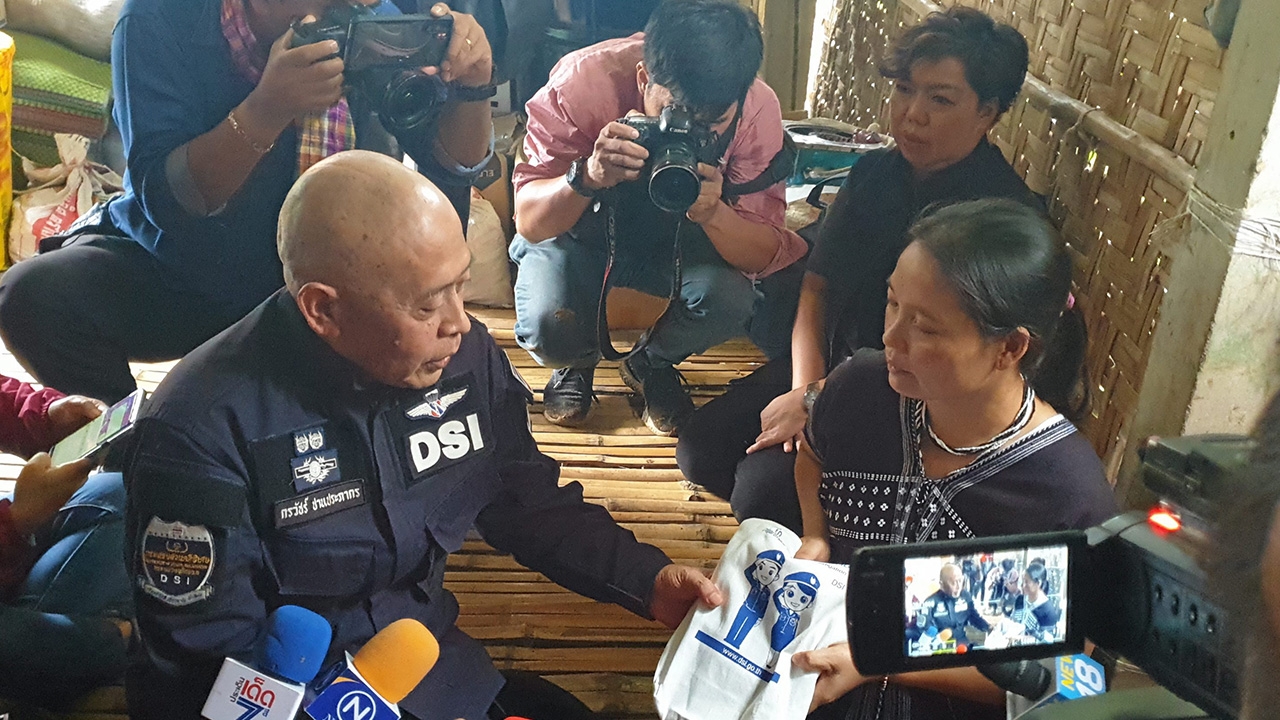 พ.ต.ท.กรวัชร์ ปานประภากร รองอธิบดีดีเอสไอ เข้าเยี่ยม น.ส.พิณนภา หรือมุนอ พฤกษาพรรณ ภรรยานายบิลลี่ถึงบ้านป่าเด็ง ต.ป่าเด็ง อ.แก่งกระจาน จ.เพชรบุรี เพื่อให้กำลังใจ ยืนยันว่าส่งกำลัง มาคุ้มครองแล้ว.