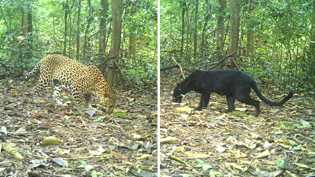 ภาพเสือดาวและเสือดำ ออกมาหากินในป่าบ้านช้างเหยียบ เขตอุทยานแห่งชาติ แก่งกระจาน จ.เพชรบุรีโดยกล้องที่ติดตั้งจับภาพไว้ได้ ซึ่งจุดดังกล่าวเป็นพื้นที่ปิดไม่ให้นักท่องเที่ยวเข้าไป แสดงให้เห็นถึงความสมบูรณ์ของป่าแก่งกระจาน.