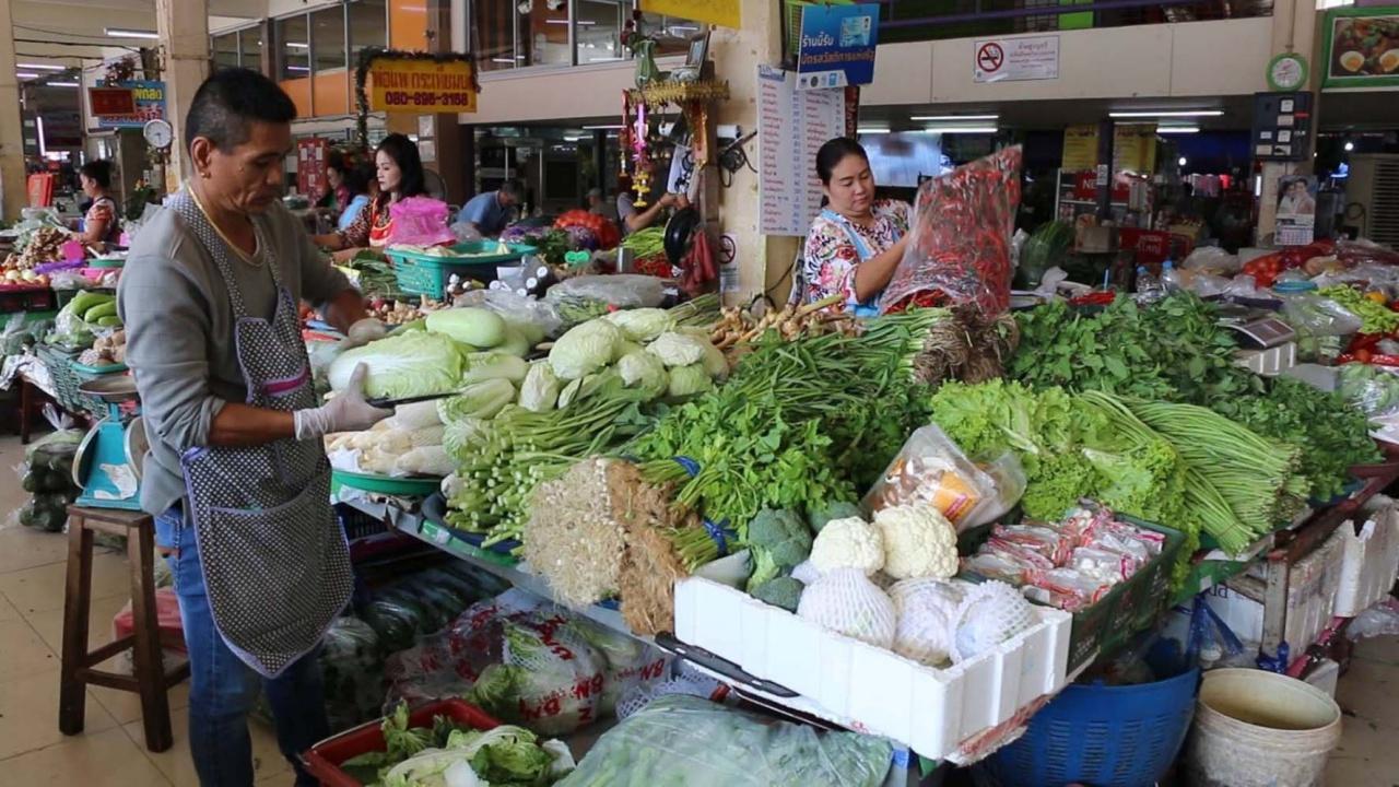 บรรยากาศการซื้อขายผักสดในตลาดเมืองอ่างทองกลับมาคึกคัก ต้อนรับเทศกาลกินเจ โดยราคาผักบางอย่างราคาคงเดิม และบางอย่างปรับตัวขึ้นไปเล็กน้อย เป็นไปตามกลไกของตลาด
