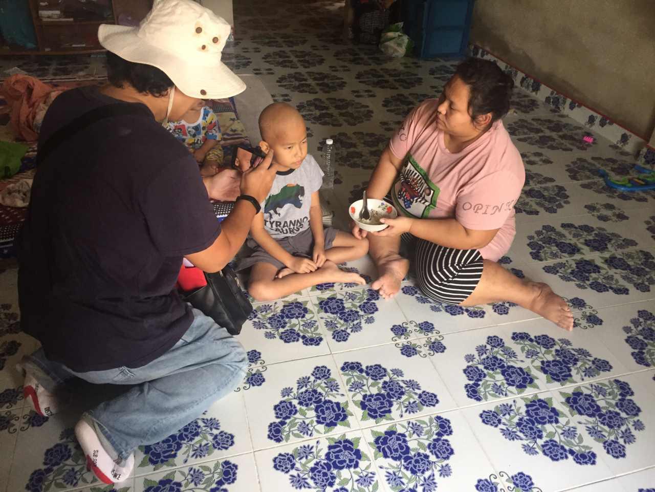 พบ น.ส.บัวขาว ฟันวิลาศ อายุ 36 ปี บ้านเลขที่ 81 หมู่ 3 ต.ไชยราช อ.บางสะพานน้อย มารดาของเด็กชายกวี ฟันวิลาศ กำลังดูแลบุตรชายอยู่ภายในบ้าน โดย น.ส.บัวขาว กล่าวว่า ปัจจุบันครอบครัวของตนอาศัยบ้านแม่เป็นที่พักอาศัย อยู่ด้วยกัน 5 คน มีสามีชื่อ นายอาทิตย์ พูลทอง อายุ 32 ปี อาชีพทำไร่ และรับจ้างทั่วไป มีรายได้เดือนละประมาณ 3,000-4,000 บาท มีลูกชายวัย 2 ขวบอีก 1 คน และแม่สามีที่ต้องดูแล ส่วนตนเองไม่ได้ประกอบอาชีพอะไรมาตั้งแต่ปี พ.ศ. 2557 เนื่องจากต้องดูแลบุตรชายที่ตรวจพบว่าเป็นมะเร็งเม็ดเลือดขาว และเข้ารับการรักษาที่โรงพยาบาลจุฬาลงกรณ์ สภากาชาดไทย จนกระทั่งปลายเดือนกรกฎาคม 2562 ตรวจพบเซลล์มะเร็งลุกลามทำให้ประสาทตาฝ่อ ส่งผลให้ปัจจุบัน น้องเดียว ตาบอดสนิททั้ง 2 ข้าง ไม่สามารถไปเรียนหนังสือได้