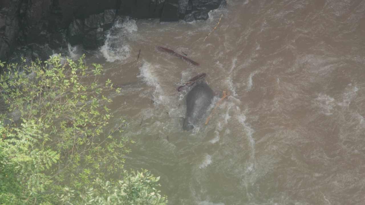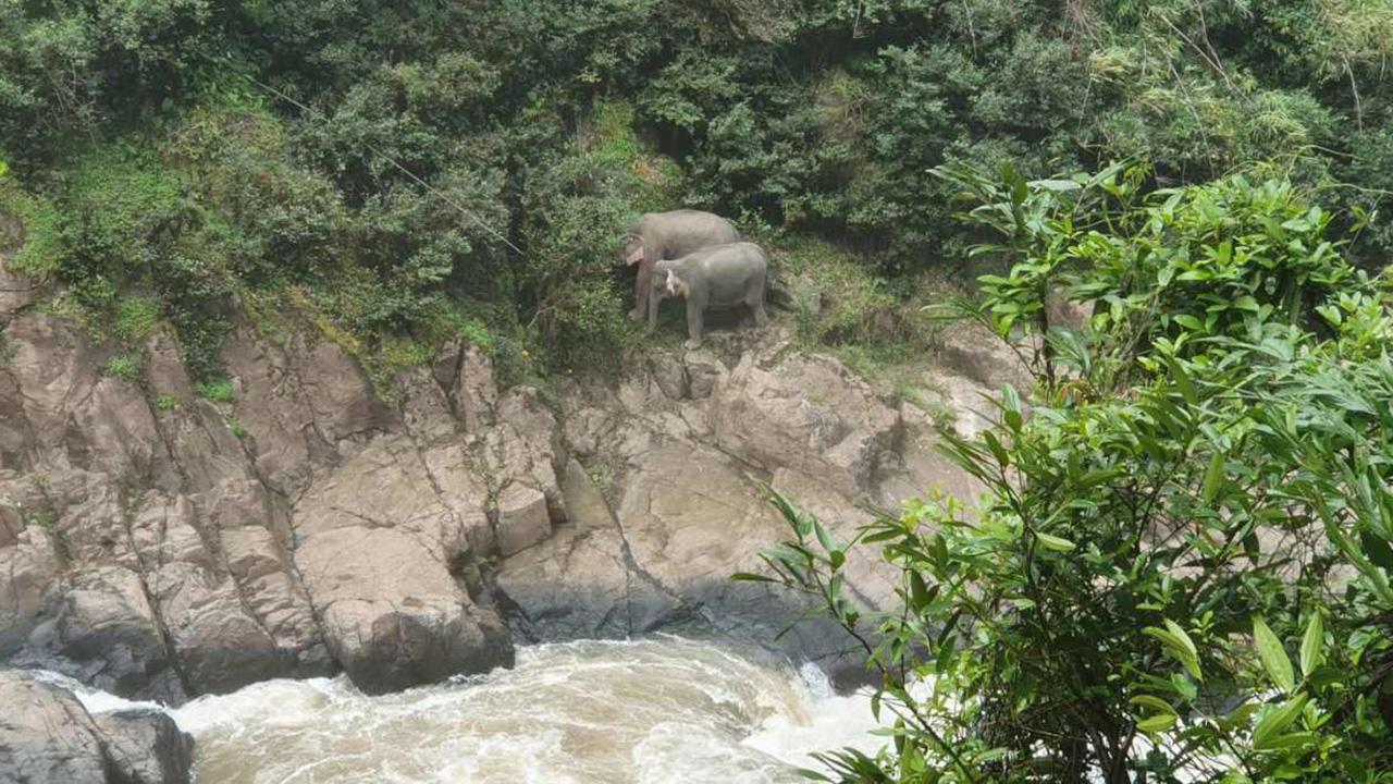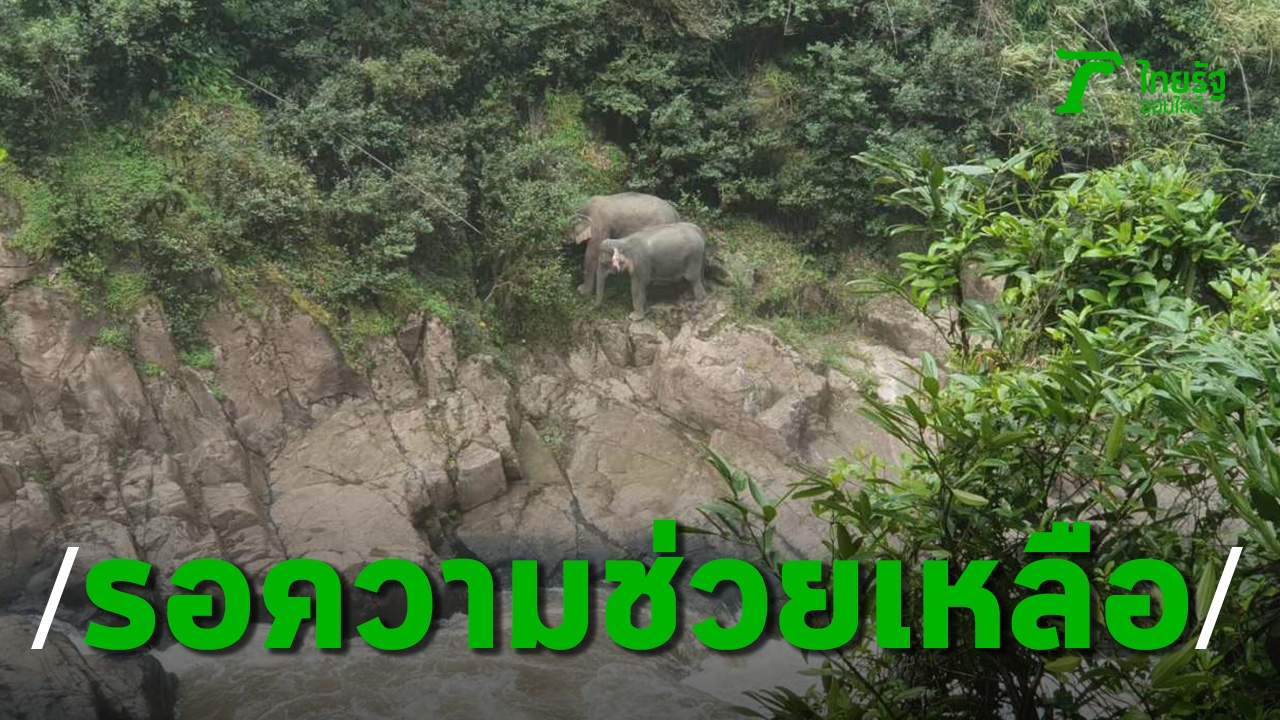 พบโขลงช้างเขาใหญ่ ตกเหวนรก ตายแล้ว 6 ตัว ยังเหลือ 2 แต่เสี่ยงที่จะตกลงไปด้วย ยืนอยู่ริมขอบหน้าผา เป็น "แม่ช้างและช้างพี่เลี้ยง" เจ้าหน้าที่ไต่เชือกโรยตัว นำอาหารลงไปให้กิน