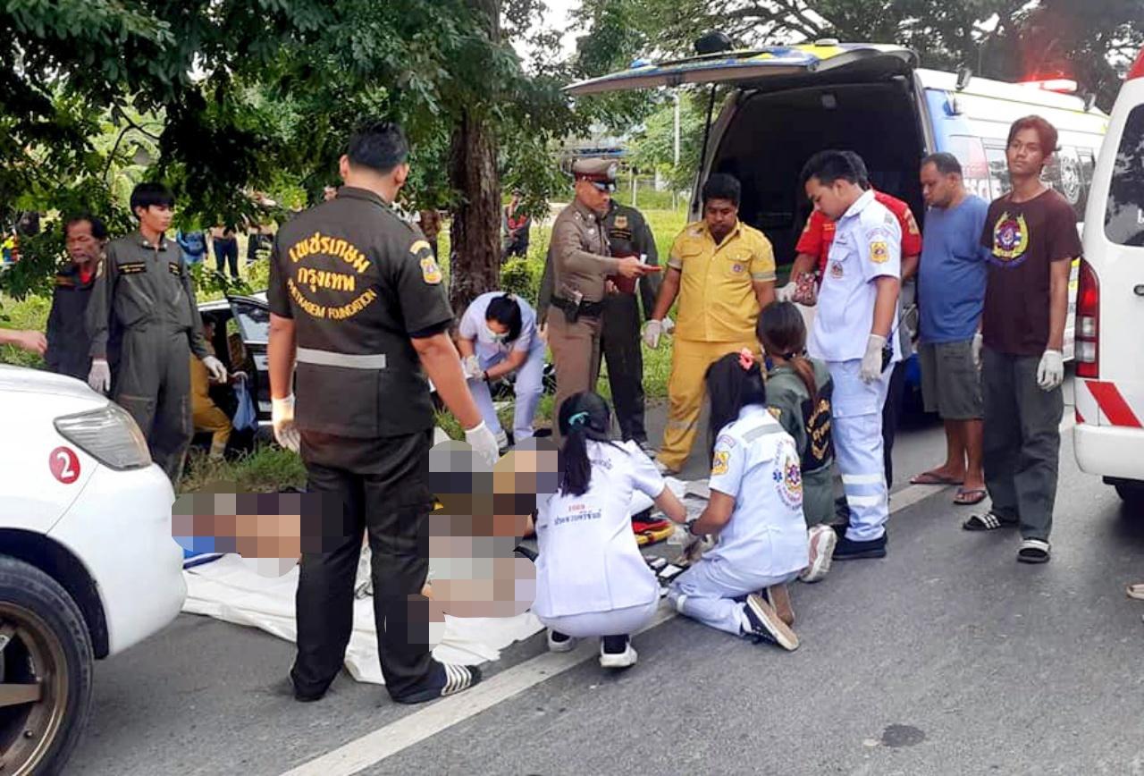 ตรวจสอบภายในรถพบผู้บาดเจ็บติดอยู่ด้านหน้า 2 คน อาการสาหัส ก่อนช่วยกันงัดร่างออกมาปั๊มหัวใจช่วยชีวิตอย่างเร่งด่วน แต่สุดท้ายไม่สามารถยื้อไว้ได้ เสียชีวิตทั้งคู่ โดยทั้ง 2 คนเป็นพี่น้องกัน ทราบชื่อต่อมา คือ นายทิวัตถ์ เมืองแดง อายุ 25 ปี ชาวบ้าน หมู่ 1 ต.บางสน อ.ปะทิว จ.ชุมพร และนายทัตพงศ์ เมืองแดง อายุ 23 ปี ชาวบ้าน ถ.ลงหาดบางแสน ต.แสนสุข อ.เมืองชลบุรี จ.ชลบุรี ก่อนนำศพส่งยังโรงพยาบาลหัวหิน ให้แพทย์ชันสูตรอีกครั้ง